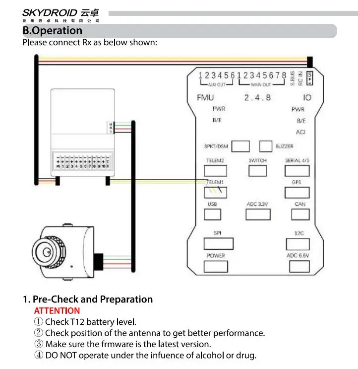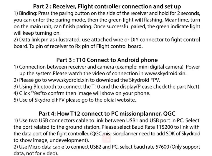 У нас есть четыре вида кабелей для подключения приемника T12 и контроллера полета: version1 --- forJiyi K3A proVersion 2 --- для Jiyi K + + версии 3 --- для VKE V7-AGVersion 4-для Boying PaladinVersion 5 --- для pixпожалуйста, укажите, какой из них вы выберете, если нет, мы отправим вам Version1 --- forJiyi K3A pro.