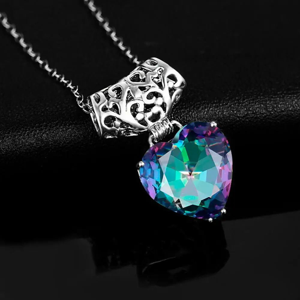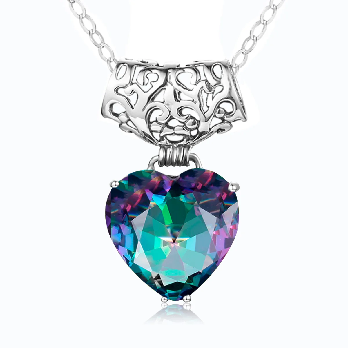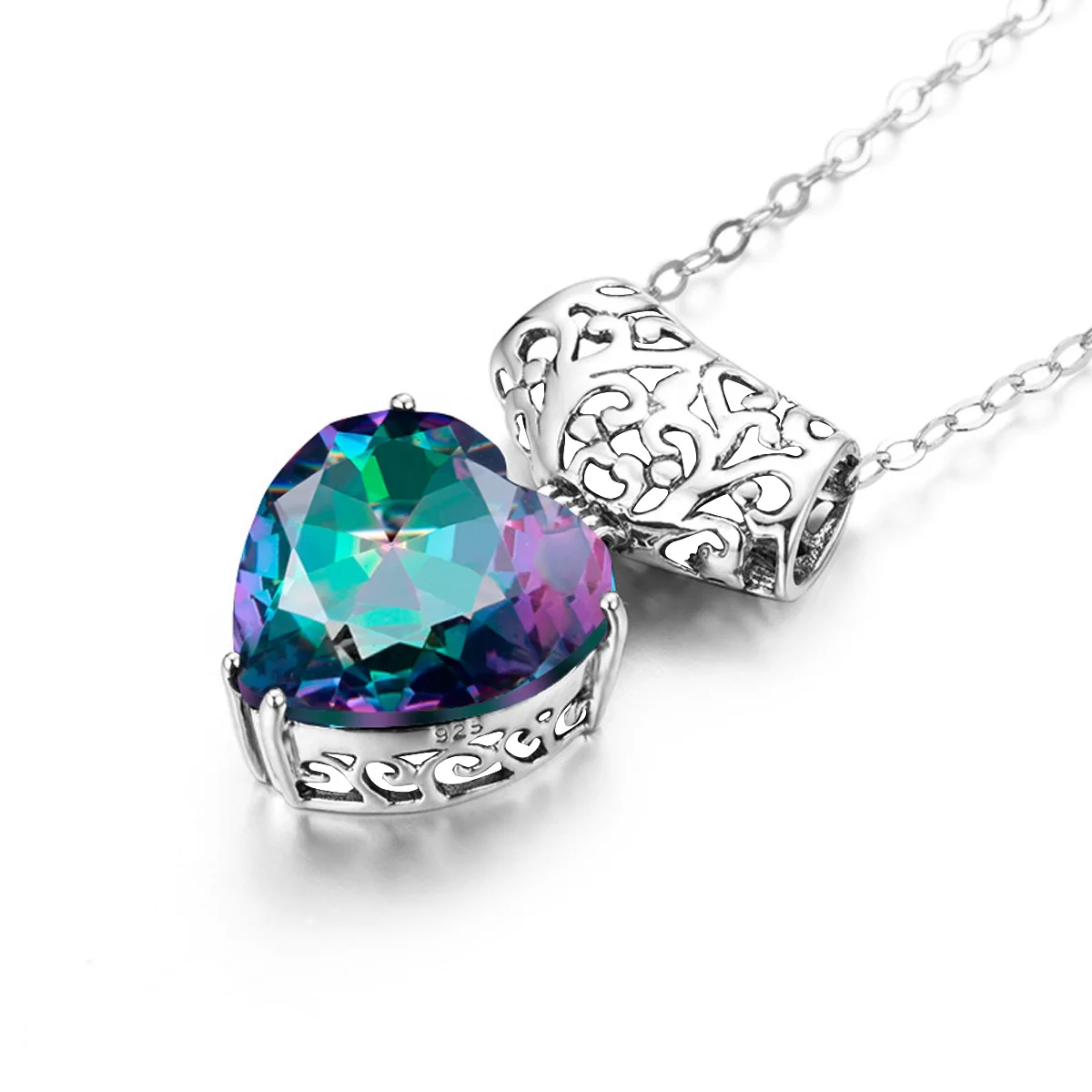 Женская подвеска в виде радужного мистического топаза Szjinao, серебряное ожерелье в стиле бохо с кулоном в виде сердца, ювелирное украшение для свадьбы, 925