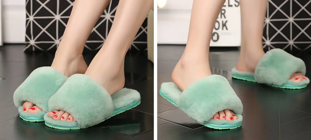 Шлепанцы женские зимние из овечьей кожи, с натуральным мехом, S6038, тапки для дома помещений