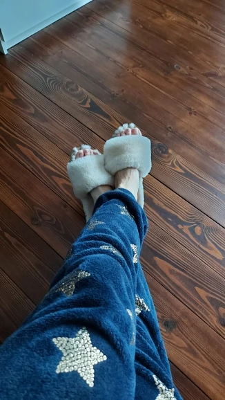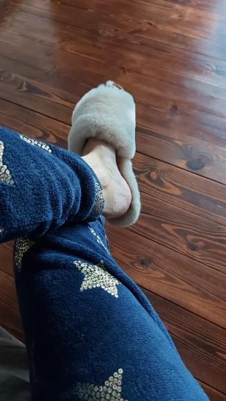Нога выскальзывает из носка. Надо было поискать и найти тапки с закрытым носком. Жалею.