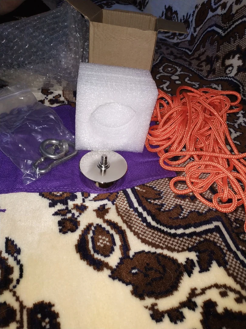 Продавец сообщил, что с наклейкой и перчатками на складе в России нет, и веревка не 20 а 10 метров и предложил отправить с Китая, я сокласился на то, что имеется в России. Магнит оказался тот же самый, только без наклейки, но все характеристики совпадают) Магнитит отлично!!! Продавец общительный, на диалог идет, разницу с товаре компенсировал! Спасибо большое.