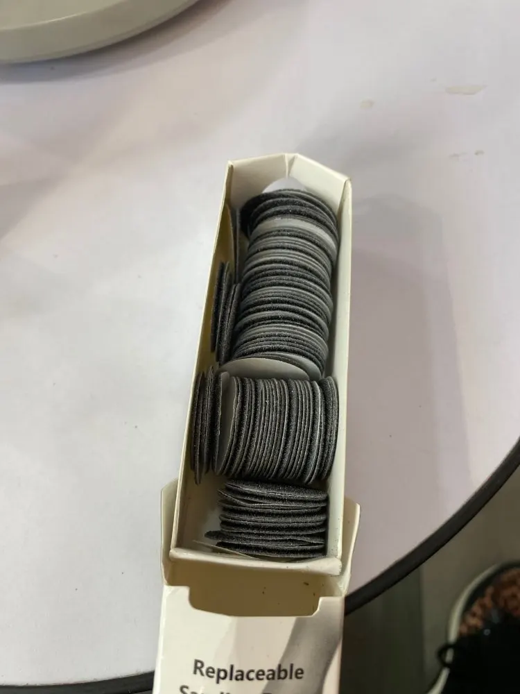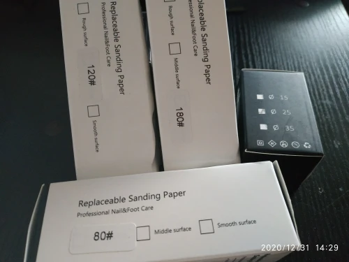 Заказ шел 1,5 месяца, но это вина не продавца, а нашей Белпочты. Товар очень качественный. Я давно хотела попробовать смарт-педикюр и вот наконец такая возможность предоставилась. Самой себе делать ужасно неудобно, но у меня получилось. Честно говоря я в восторге.... Педикюр я всегда делала себе сама с помощью лазерной терки (супер вещь кстати) и грех было жаловаться, но то, что я получила при помощи дисков - это нечто. Пятки просто отполированы и рука постоянно тянется их потрогать. Естественно нужно иметь кое-какие навыки в работе с аппаратом, но если вы ими владеете, то однозначно советую к покупке. Диски ровные, отцентрованы, сменные файлы ровненькие, без зазубрин, в точности соответствуют размеру диска. Они ничуть не хуже всем известных брендированных. Покупала со скидкой все три абразива ( 3 диска + 300 файлов) получилось очень выгодно. От души рекомендую тем, кто умеет с этим работать.