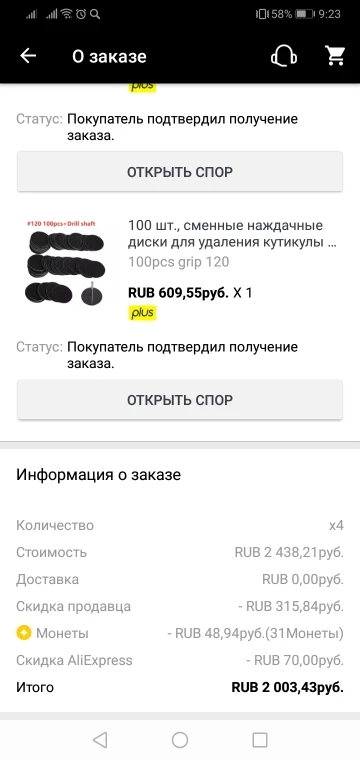 Заказ пришёл очень быстро, забрала в 5чке,очень удобно!! Объединили 2 заказа (из другого магазина причём) в одну посылку, просто двойная радость! Набор заказываю второй раз, очень удобные диски. На этот раз заказала на 100 грит. Спасибо продавцу и магазину, ставлю 5*****