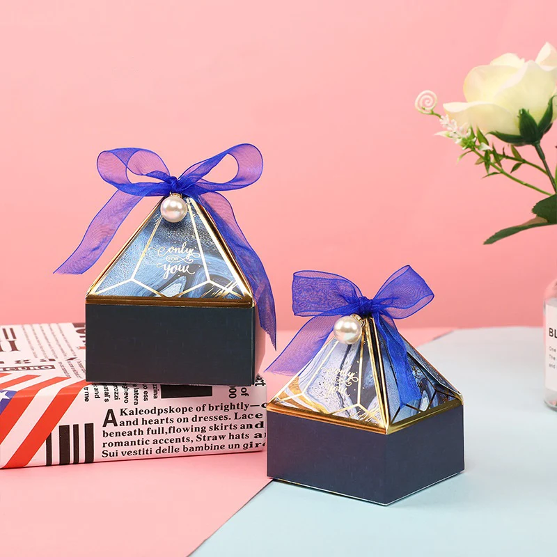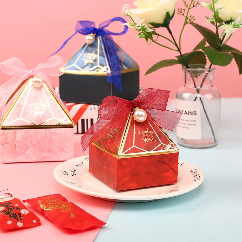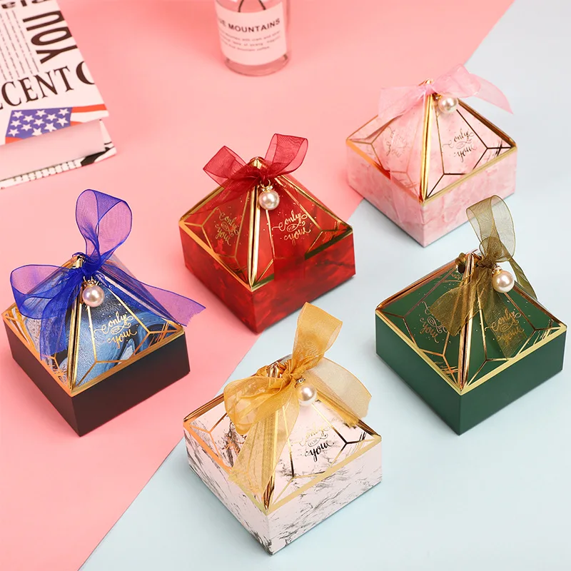 Подарочная коробка в форме пагоды ромбовидной формы, для упаковки на день рождения, свадебный сувенир, красивая бумага, Подарочный пакет, Мраморная коробка для конфет с лентой