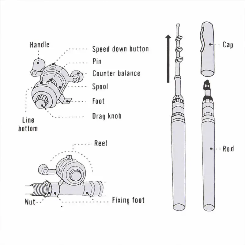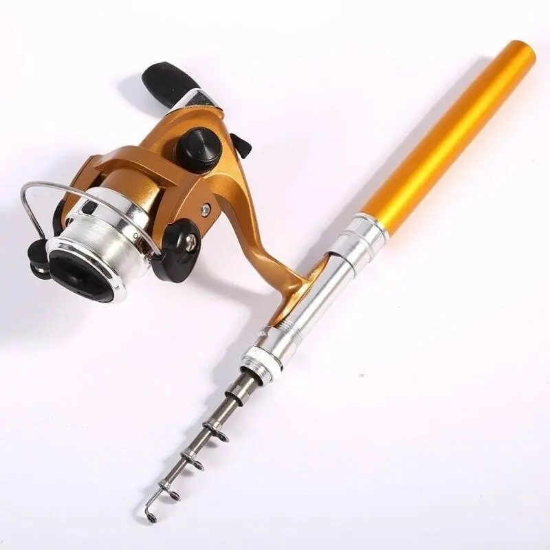 Телескопическая легкая Мини Портативная карманная рыболовная удочка в форме ручки из алюминиевого сплава + катушка снасти инструменты