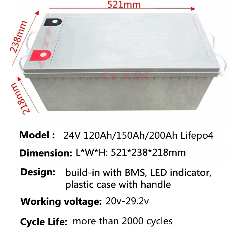24V 120Ah/150Ah/200Ah LiFepo4 аккумулятор Встроенный BMS