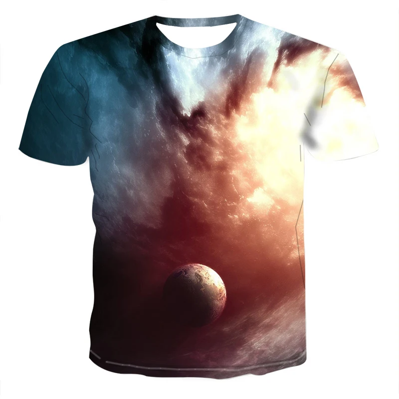 Футболка мужская с 3D-принтом звездного неба, модная рубашка с коро...