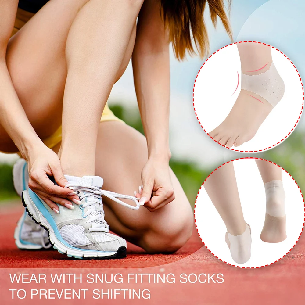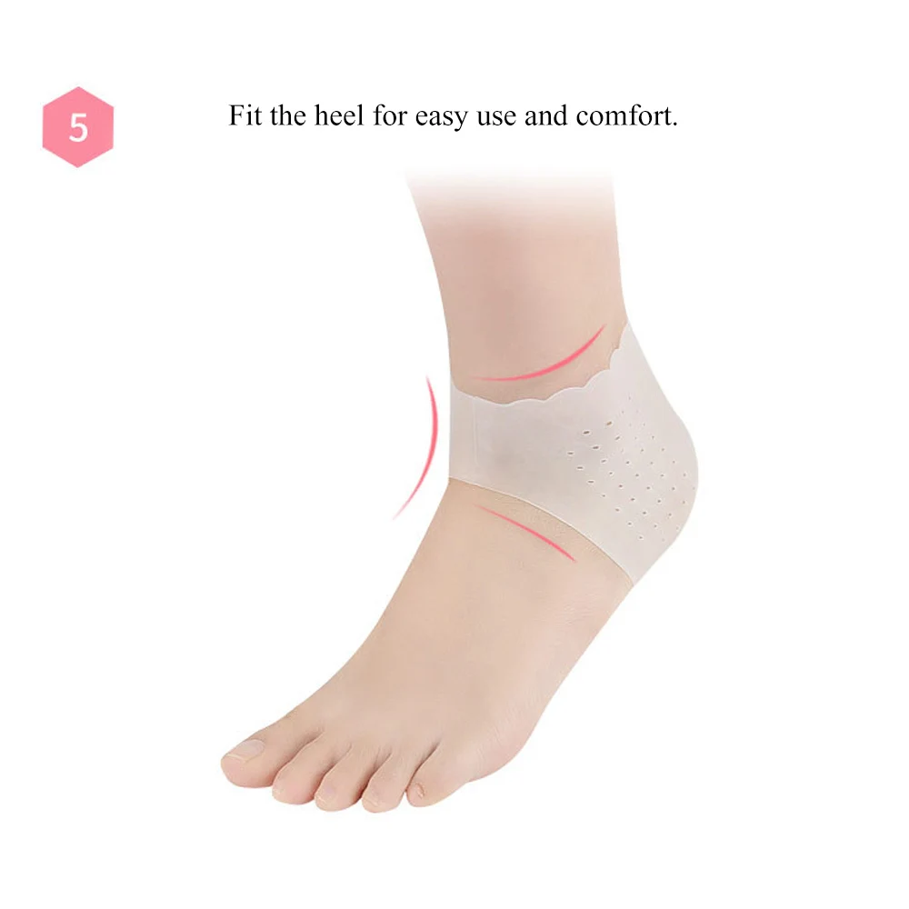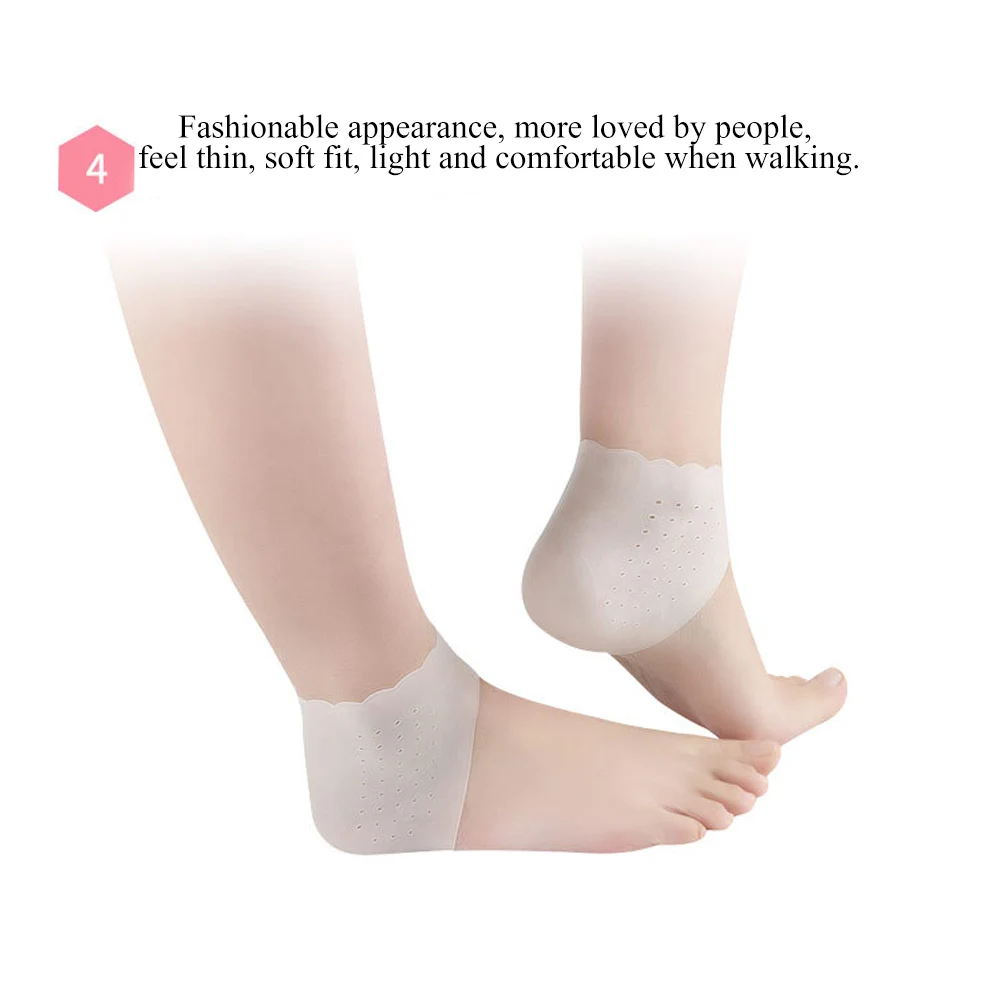 3. Мгновенная боль в пятке и облегчение давления: Наши силиконовые гелевые подушечки на пятке помогают облегчить сильную и хроническую боль в пятке и дискомфорт, наиболее часто вызванные; Шпоры на пятке, Шпоры на костях, стрессовые переломы, растягивающаяся стопа, тендонит, боль в сухожилии, опухшие ноги и подошвенный фасциит, А также общие боли и боли в ногах.