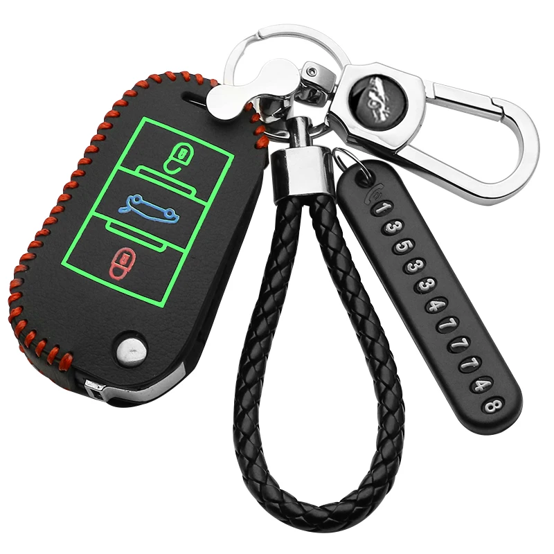 Светящийся кожаный чехол для автомобильного ключа для Peugeot 207 3...