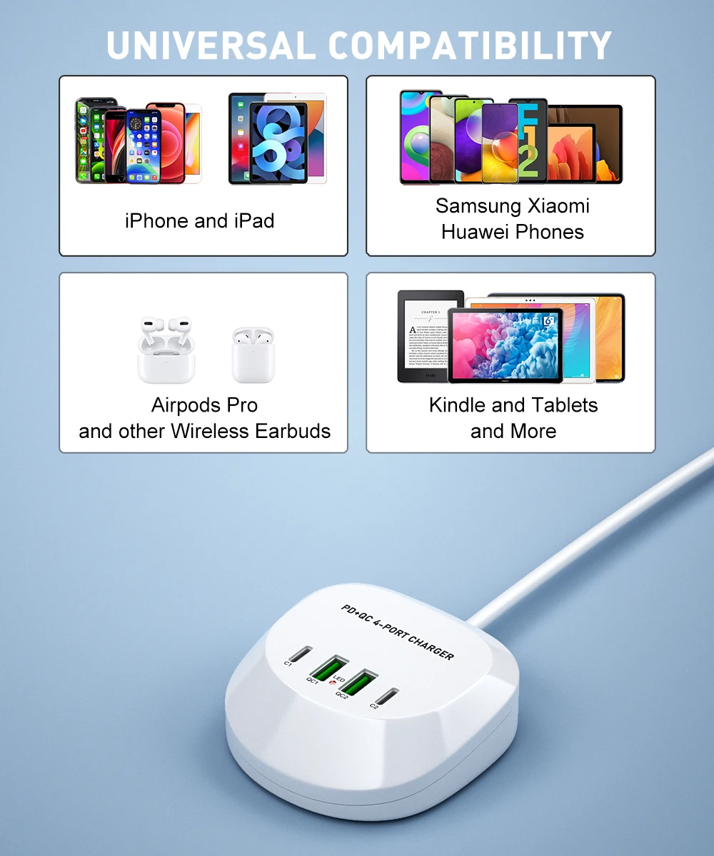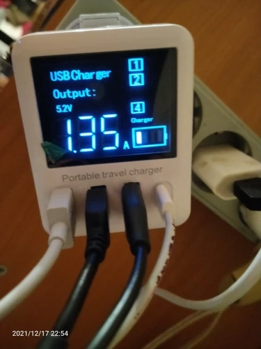 Зарядное устройство сетевое с 4 USB-портами и ЖК-дисплеем, 40 Вт