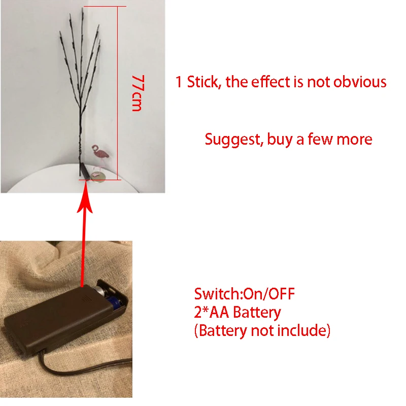 1 шт., светодиодная гирлянда в форме ветки дерева, 20 лампочек