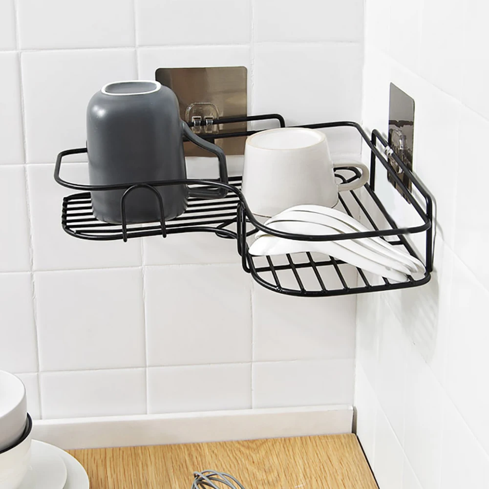 Полка для ванной, угловая полка без отверстий, железная полка для хранения, прочная настенная полка для душа, кухни
