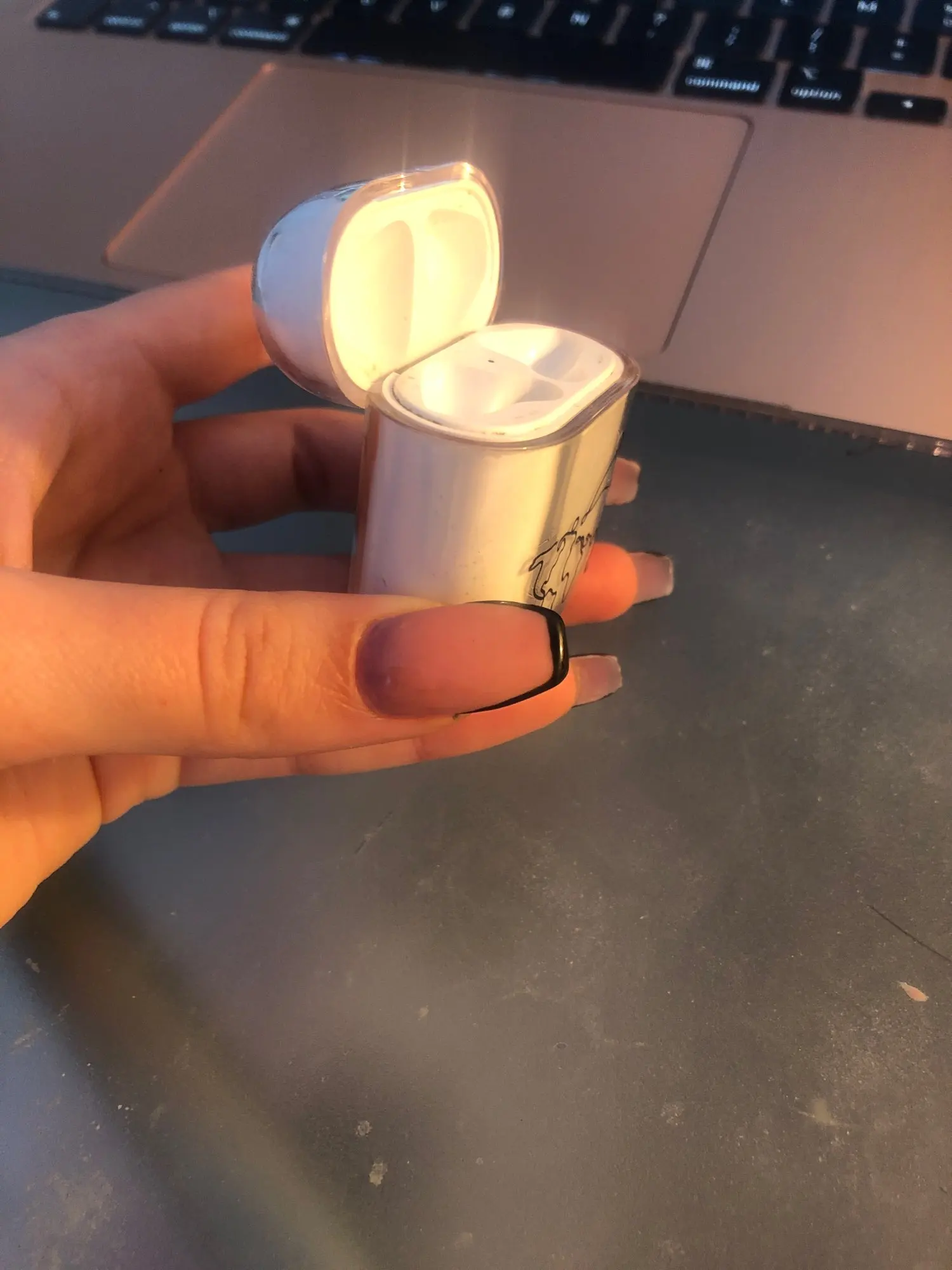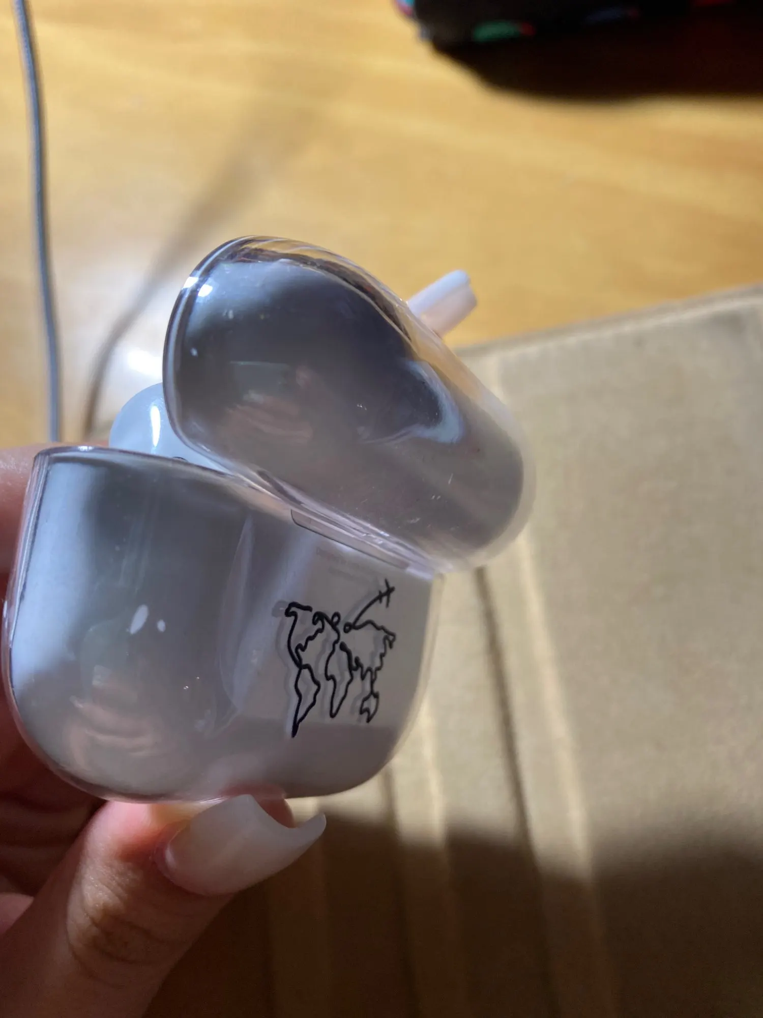 В целом чехол хороший, рисунок красивый, крышка отдельная, не спадывает, все легко снимается и надевается, единственное я не обратила внимание на то что он пластмассовый, думала будет мягкий. И ещё серые пятнышки как вы видите, это воздух, возможно что наушники с холода из за этого, но немного портит картину (без наушников на чехле ничего нет, и на наушниках тоже), но в целом все супер, спасибо!)