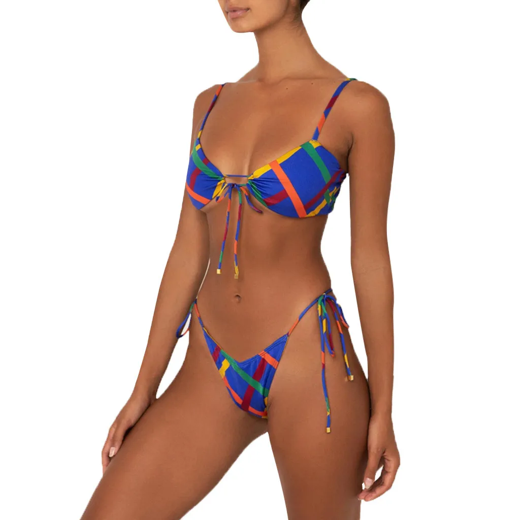 Пикантный клетчатый бикини 2022, купальный костюм, Женская купальная одежда с бандо, Женский комплект микро-бикини, Бразильский купальный костюм, купальник пуш-ап
