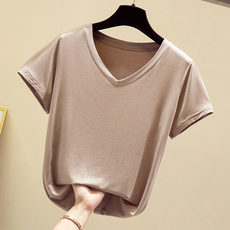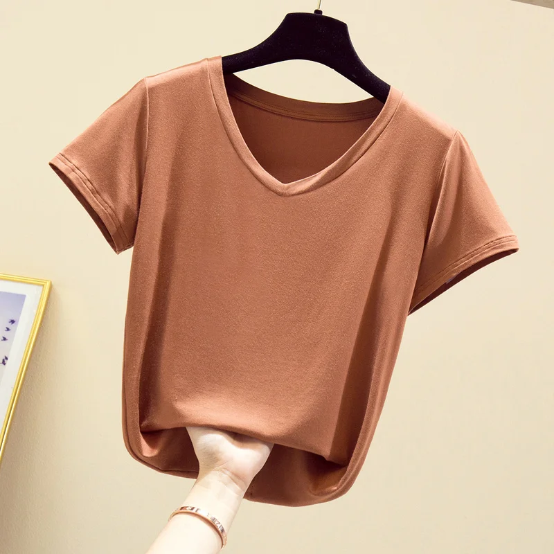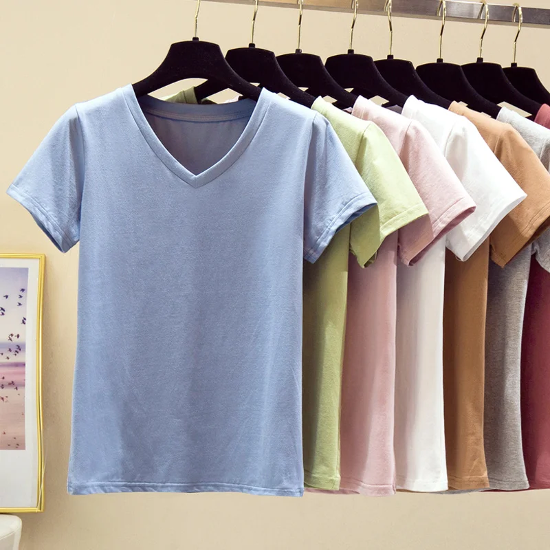Женская летняя хлопковая футболка с коротким рукавом и круглым вырезом