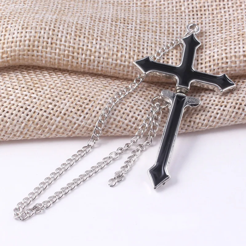 Серьги-подвески женские, черные, в стиле панк, с крестом, на длинно...