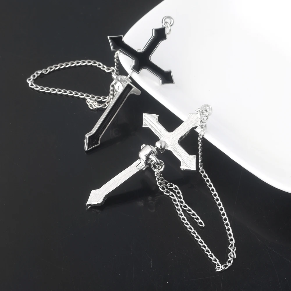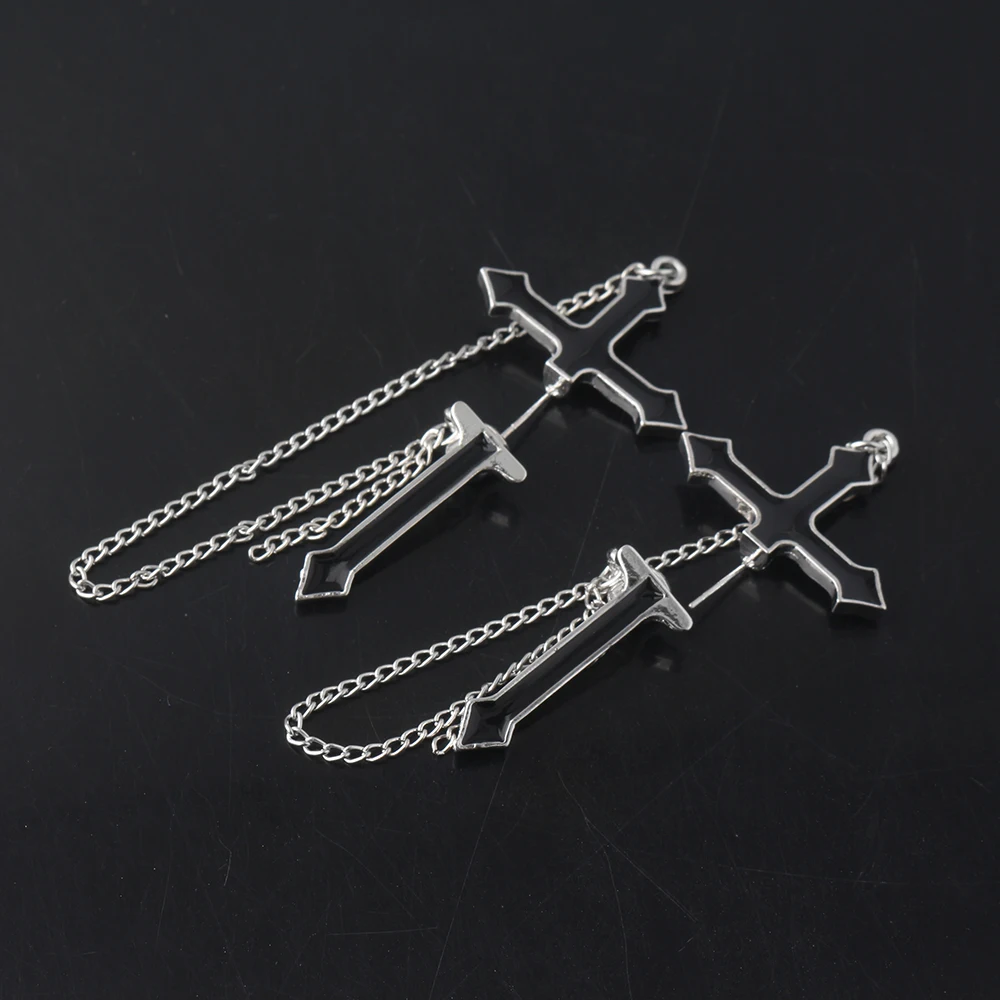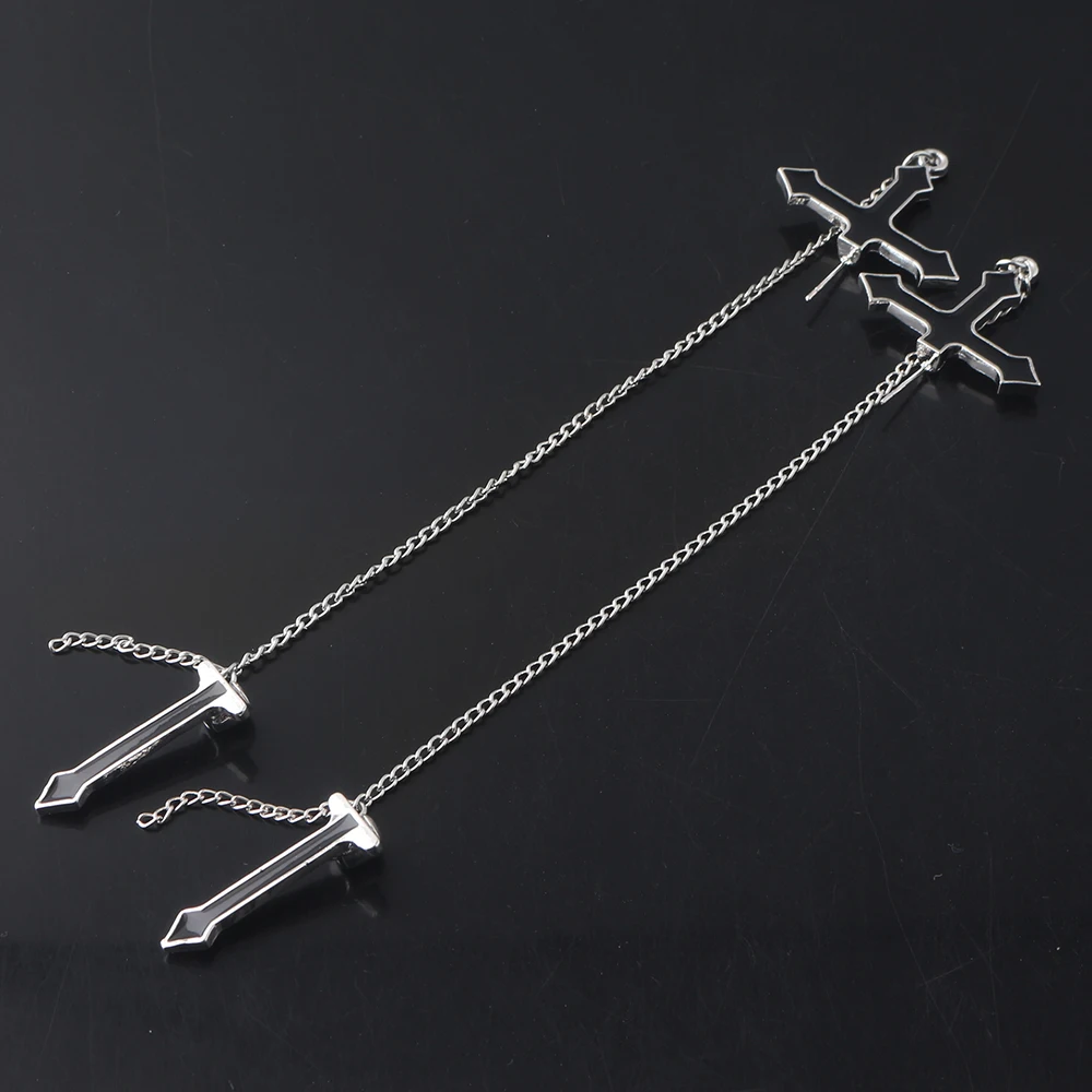 Серьги-гвоздики в Корейском стиле с крестом для женщин и девушек, модные винтажная Длинная цепочка серьги с кисточками в стиле унисекс, Подарочная бижутерия в вечернем стиле, 2 шт.