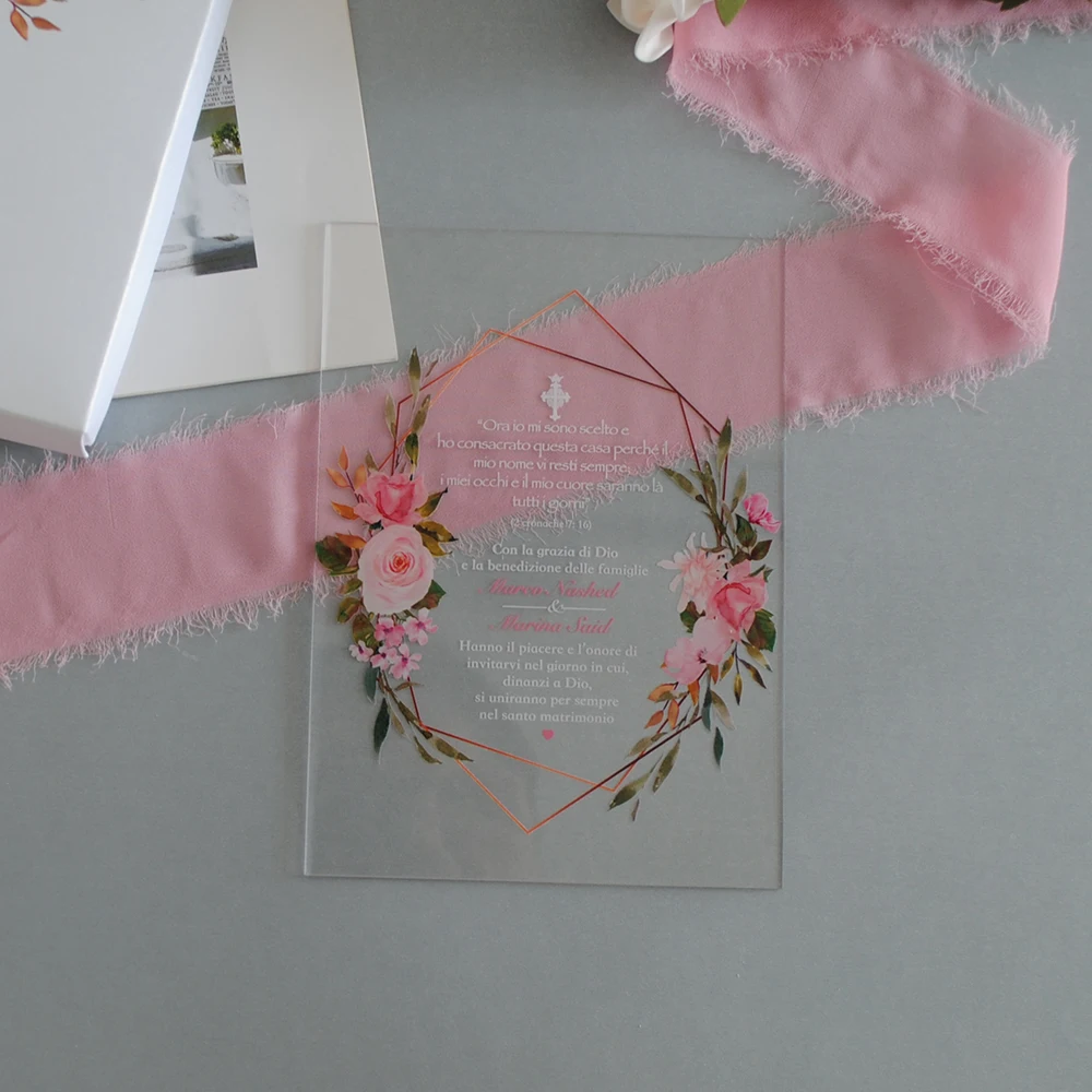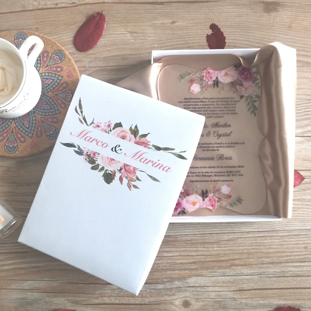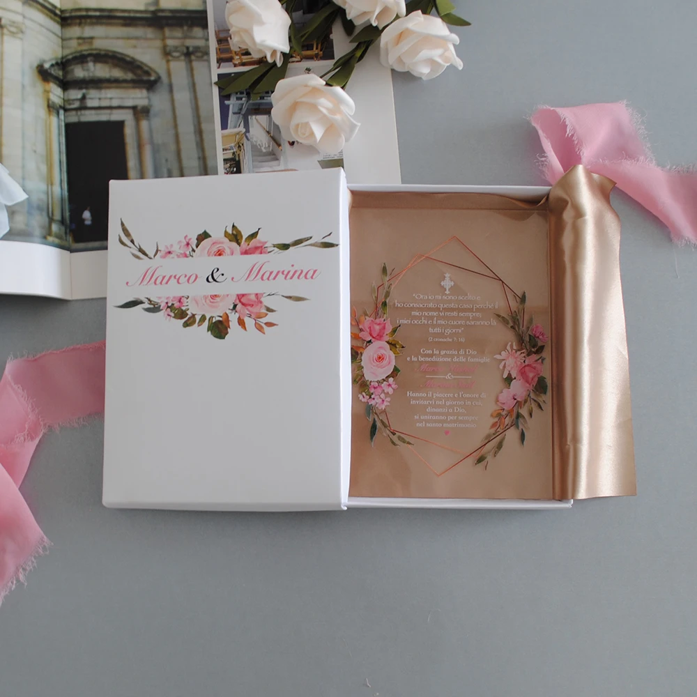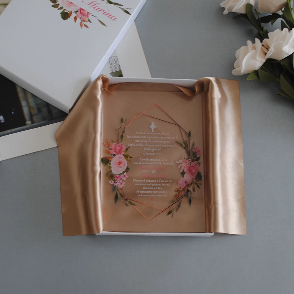 10 шт. прозрачная акриловая карта с печатной коробкой, акриловая Свадебная пригласительная открытка на заказ, Высококачественная УФ-печать, экологически чистые чернила