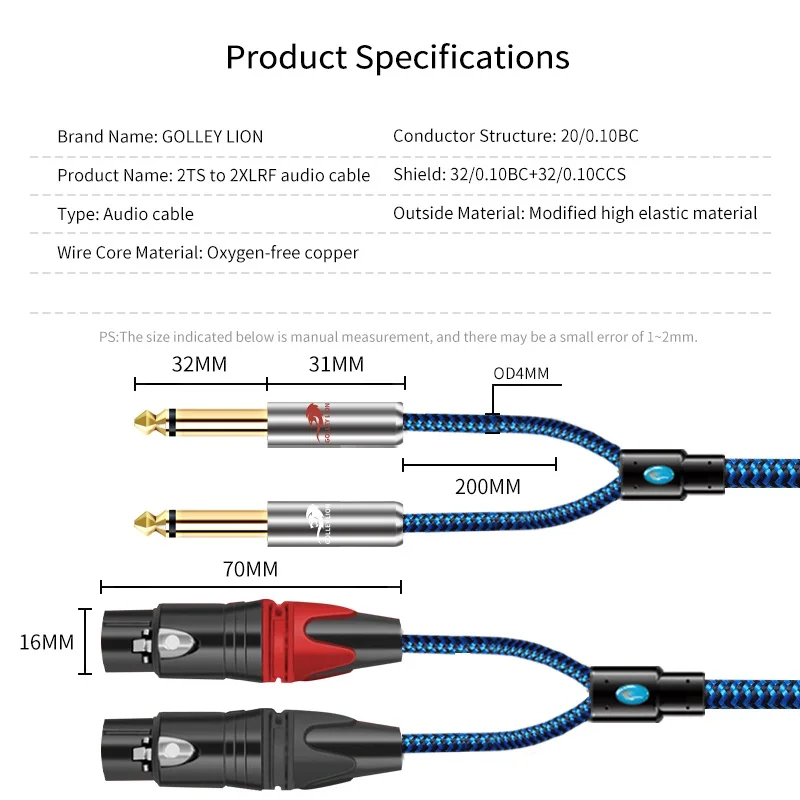 > Кабель основной Проводник:Бескислородный медный проводник обеспечивает отличную проводимость и оптимальную передачу сигнала. Высококачественная аудиопередача и обеспечивает лучший звук. Аудиокабель подходит для вашего дома-развлечения, HiFi системы, миксера, сабвуфера, динамика, музыкального инструмента или более аудиоустройства.
