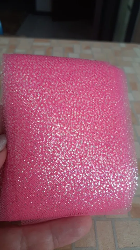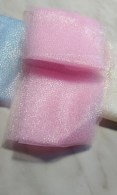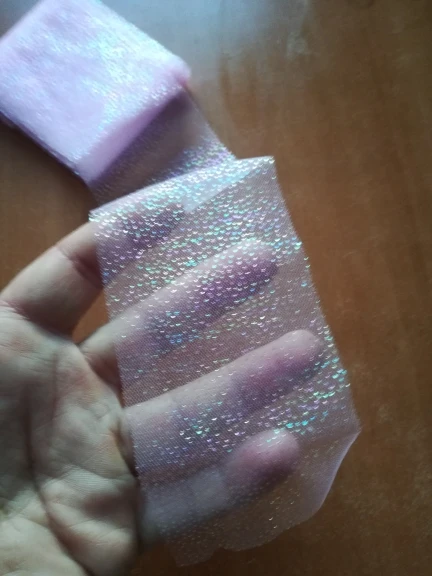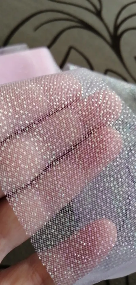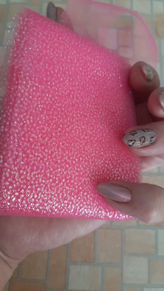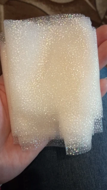фатин красивый. цвет как на фото. сетка мелкая, очень нежный, мягкий. блестки держатся хорошо.