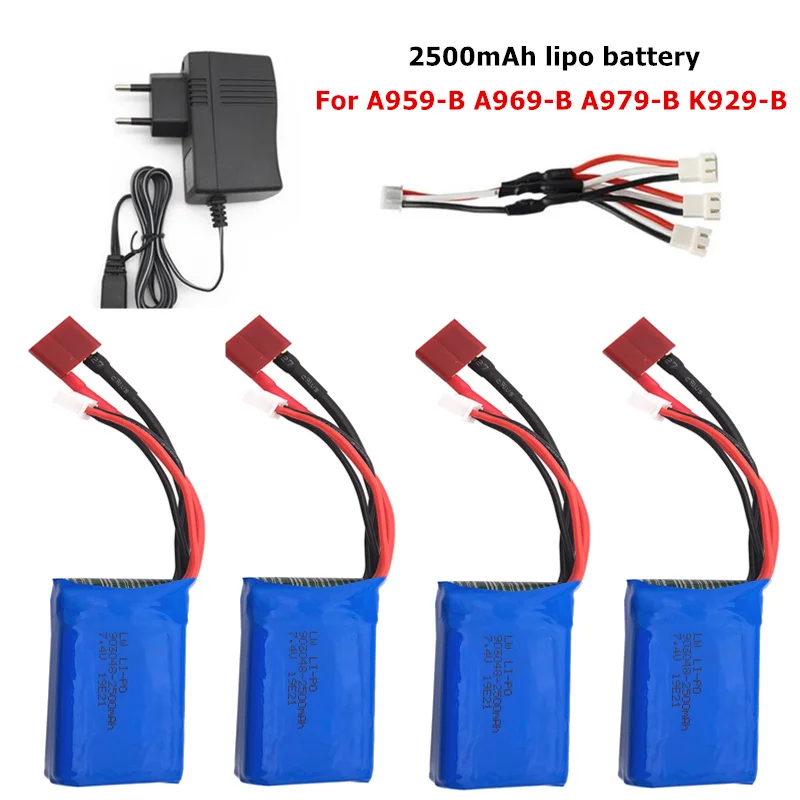 Литий-полимерный аккумулятор высокой емкости 7,4 В, 2500 мАч, 2S + кабель (3 в 1)+ зарядное устройство для Q39 Wltoys A959-B A969-B A979-B K929-B, запасные части для радиоуправляемых автомобилей