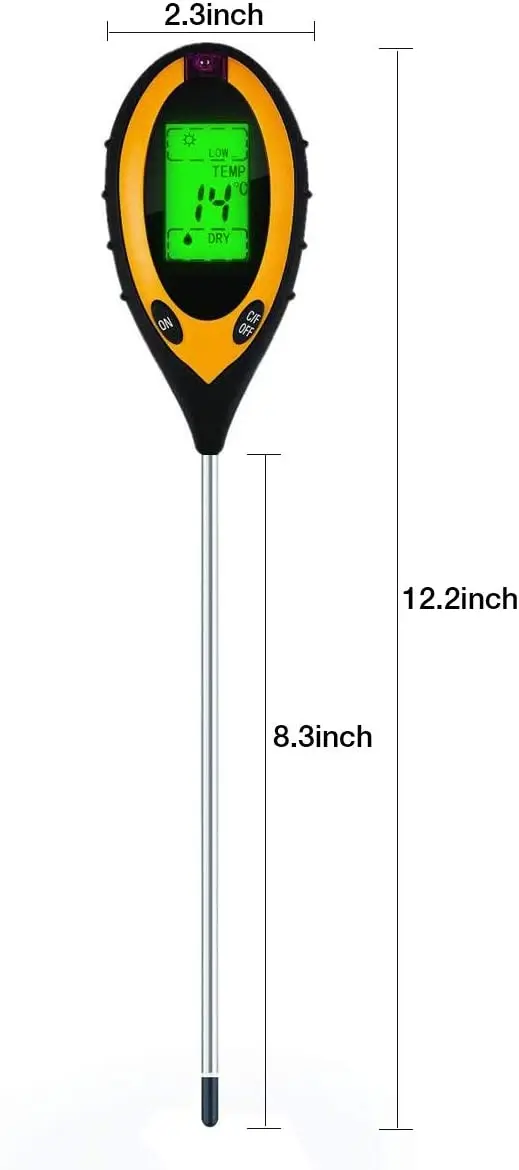(Батарея не требуется)3-в-1 Функция: вы можете знать, когда полива путем измерения влажности почвы. 3 в 1 почвы тестер кислотности также может испытать солнца светильник, дайте знать если завод насытиться светильник, он хорош для здоровья. Самое главное, что измеритель pH влаги может помочь вам контролировать уровень PH в почвы, кислотных или щелочных, пока он не подходит для ваших растений.✅Точные показания: диапазон pH: 3,5-8ph (3,5-6,5 кислота, размером 7-8 щелочной), Диапазон влажности: 1-10 (1-3, 4-7, ни, 8-10 влажный), относительный светильник: 0-2000lux (0-200 низкий, 200-500 низкий +, 500-1000 нор, 1000-2000 высокий). Через некоторое время вы получите точные данные.✅Внутреннее и наружное Использование: Этот измеритель влажности является идеальным инструментом для проверки условий почвы (влажность/светильник/PH) фруктов, цветов, овощей, кустарников и т. д. с высокой точностью и простой работой. Вы можете позаботиться о своих растениях. Это идеальный набор для испытаний почвы для ухода за растениями, дома и сада, лужайки, фермы.✅Многофункциональность: 1. Дайте знать, когда вода. С помощью этого тестера вы больше никогда не будете погружаться в воду. 2. Поможет вам контролировать уровень Ph в грунте, кислой или щелочной, подходит для ваших растений. 3. Поможет вам определить, получает ли растение адекватный светильник.3-в-1 Функция тестер1. Проверка влажности: вы можете узнать, когда поливать, измеряя содержание влаги в грунте.2. Светильник Тесты: 3-в-1 почвы тестер кислотности Тесты экологических требований, а также может Тесты солнца светильник, дайте знать если завод насытиться светильник, он хорош для здоровья.3.PH Тест: самое главное, что измеритель pH влаги может помочь вам контролировать уровень PH в почвы, кислой или щелочной, пока он не подходит для ваших растений.Как использовать:Шаг 1: Переключение на положение влаги/pH/светильник согласно требованиюШаг 2: вставьте зонд в почву около 2-4 дюймовШаг 3: Отрегулируйте положение зонда до тех пор, пока указатель на циферблате не начнет слегка поворачиватьсяШаг 4: Проверьте уровень влажности/pH/светильник в циферблате через 10 минутШаг 5: Удалите Зонд из почвы и протрите после каждого использованияТеплые советы:1. Чтобы не повредить зонд, не используйте в почвенном измерителе камни и не вставляйте их силой.2. Протрите и очистите зонд после каждого использования.3. Не оставляйте метр в грунте в течение длительного времени.4. Предназначен для тестирования почвы, не используйте его для проверки чистой воды или других жидкостей.Важные Примечания:▼Обратите внимание, что не прикасайтесь к каменной или твердой грунтовой поверхности, легко повредить зонды, если почва слишком жесткая и сухая.▼Не Используйте его для проверки чистой воды или другой жидкости, на индекс электролитической реакции будет влиять, он может использоваться только для измерения почвы.Характеристики:Диапазон влажности: 1-10 (1-3 сухих, 4-7 нор, 8-10 влажных).Относительный светильник: 0-2000 люкс (0-200 Low, 200-500 Low +, 500-1000 Nor, 1000-2000 Hgh).Диапазон PH: 3,5-8 pH (3,5-6,5 кислота, размером 7-8 щелочной).Продукт Размеры: 10,2x2,0x1,2 дюйм (ов).Длина зонда: 7,0 дюйм (ов).Расстояние между зонды: 0,4 дюймов.Диаметр медного зонда: 5 мм.Диаметр алюминиевого зонда: 5 мм.