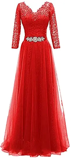 ANGELSBRIDEP вечерние платья с длинным рукавом кружевные тюлевые платья с поясом для женщин вечерние платья для выпускного вечера Лидер продаж