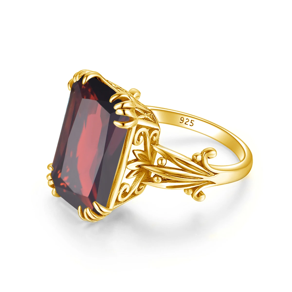 Массивное кольцо с красным гранатом 13*18 мм, прямоугольное кольцо из чистого серебра 925 пробы с камнем по месяцу рождения, роскошное позолоченвечерние женское Ювелирное Украшение, лидер продаж