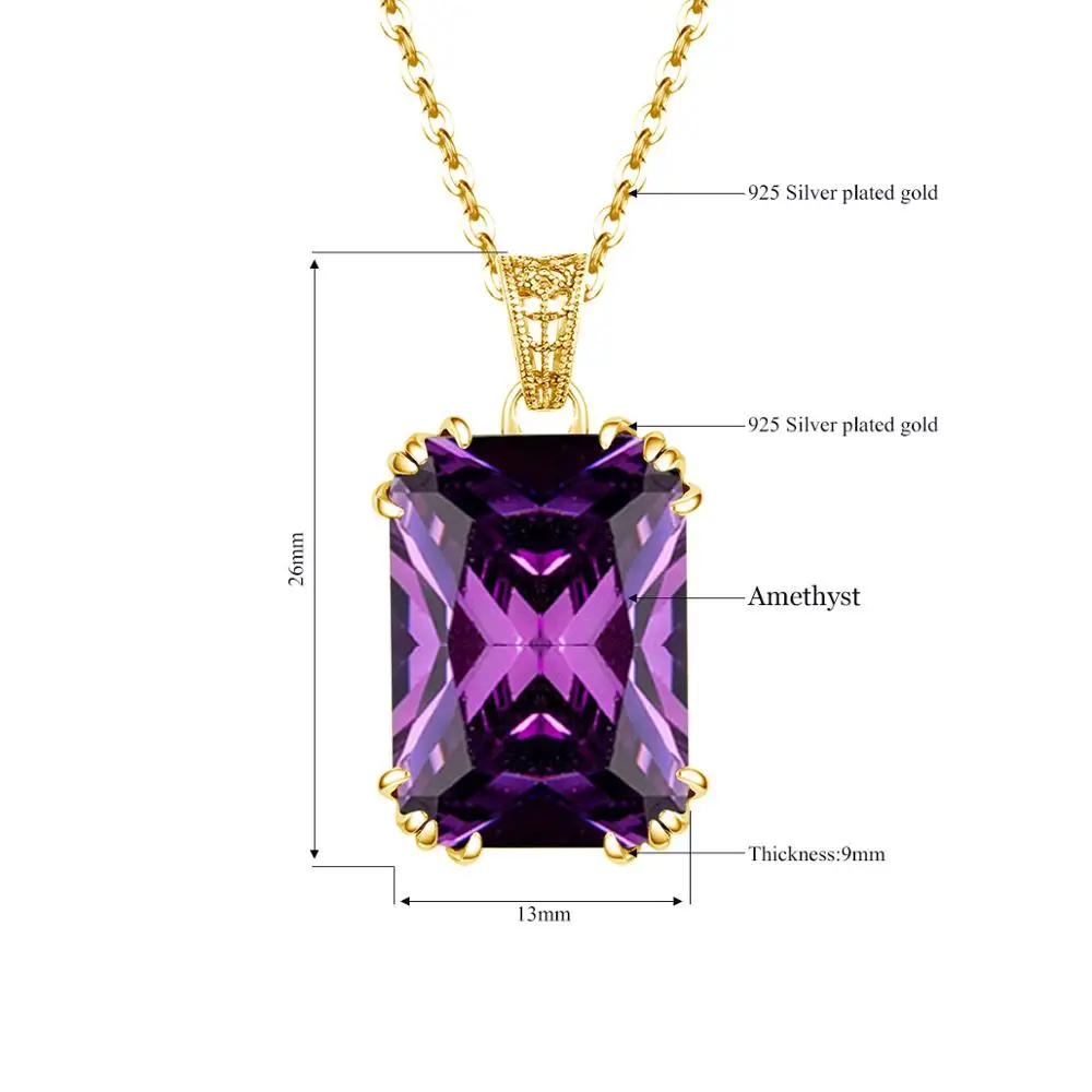 Бренд: Rosewood StoryТип камня: синтетический АметистРазмер основного камня: 13 ммЧеткость камня: VVSЦвет камня: ПрозрачныйФорма камня: квадратнаяТип металла: твердый 925 пробы Серебряный + 14K позолоченныйЦвет металла: Желтое золотоУпаковка:1 * Серебряная полировальная ткань,1 * Изысканная Подарочная коробка,1 * аметист драгоценный камень кулонПримечание: кулон не включает серебряное ожерелье, если вы покупаете кольцо, серьги и кулон вместе, мы можем отправить вам настоящее ожерелье из стерлингового серебра 925 пробы в качестве бесплатного подарка.