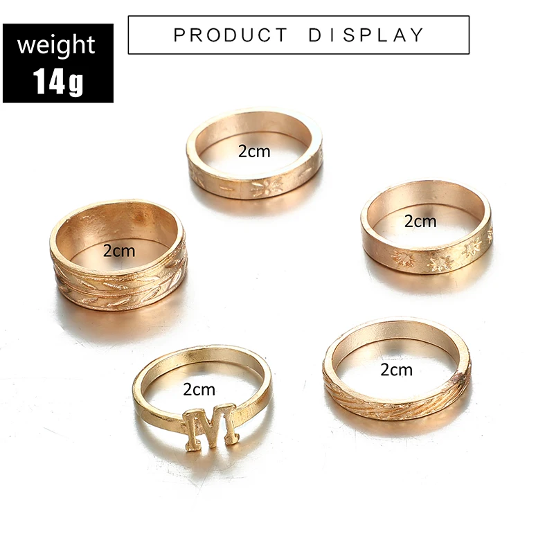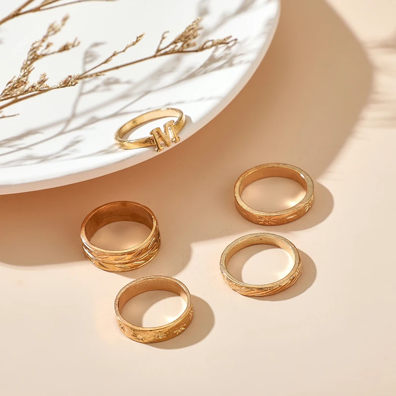 Кольца обручальные Tocona, 5 шт.компл., с богемными золотыми буквами, M кольца для мужчин и женщин, блестящие, простые, из сплава металла, наборы ювелирных изделий, кольца 9733