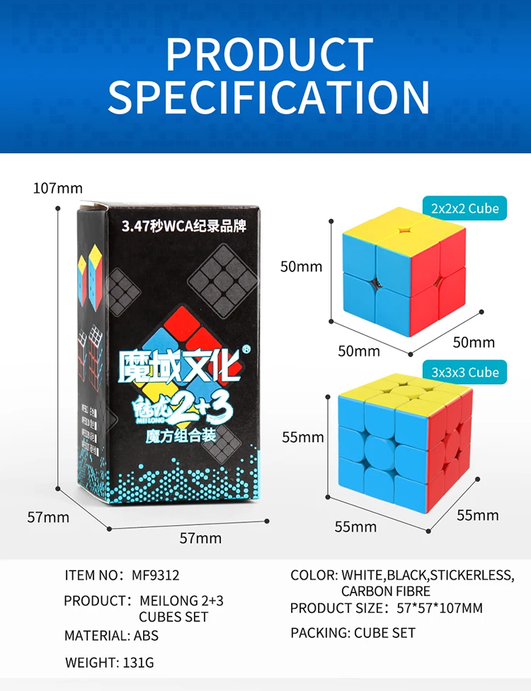 Набор скоростных кубиков Moyu MofangJiaoshi 2x2 3x3 Meilong, обучающие игрушки для детей, подарок, 2 шт.компл.