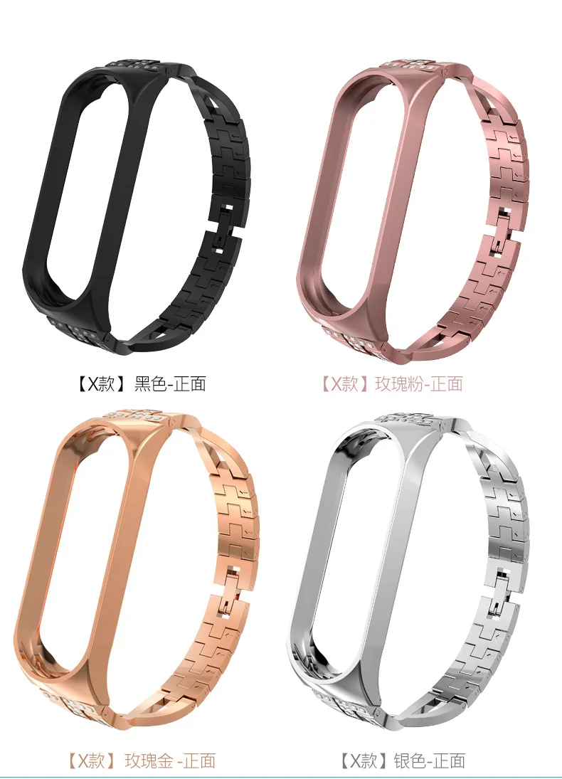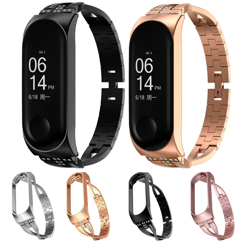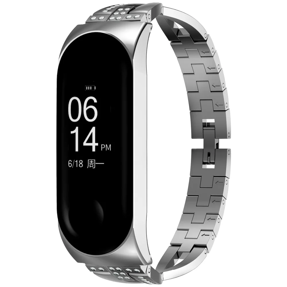 Браслет из нержавеющей стали со стразами для Xiaomi Mi Band 3 4, роскошный ремешок для наручных часов Xiao Mi Band 34
