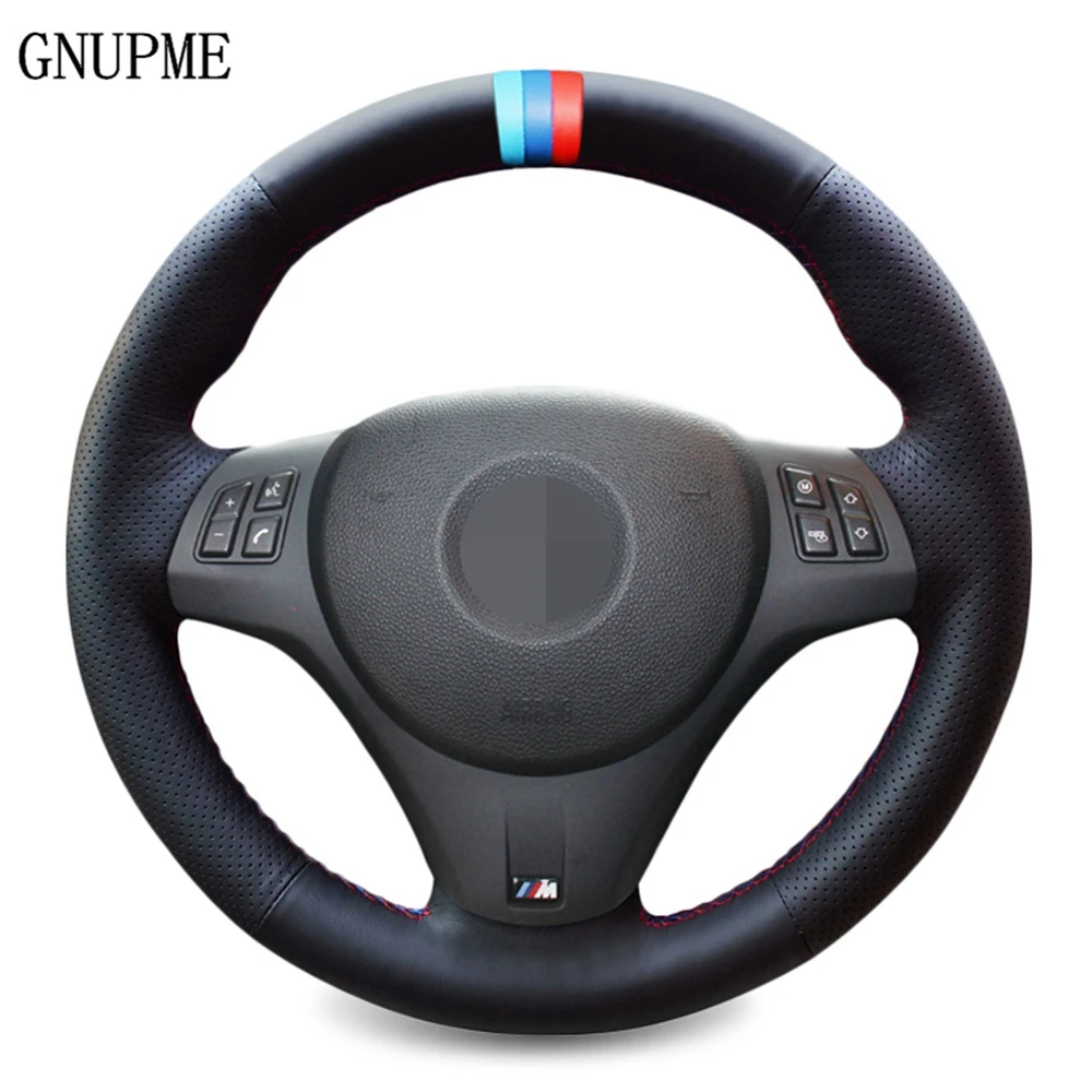 GNUPME черный чехол из натуральной кожи для рулевого колеса автомоб...