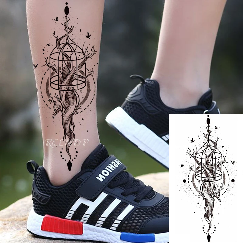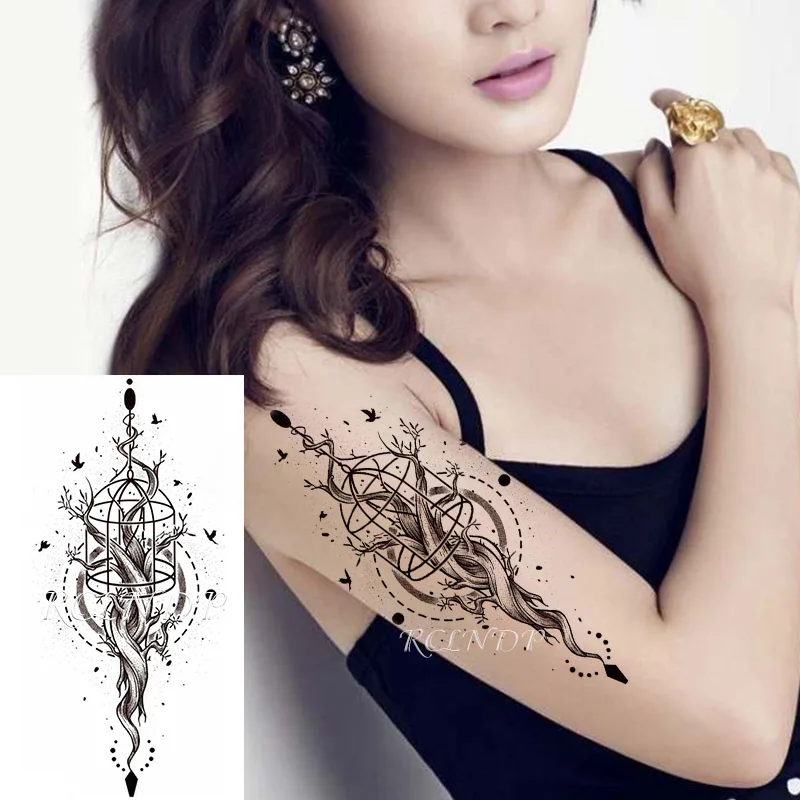Водостойкая Временная тату-наклейка птица птичка мертвое дерево круг геометрические Эле Мужские t поддельные тату флеш-тату для женщин мужчин