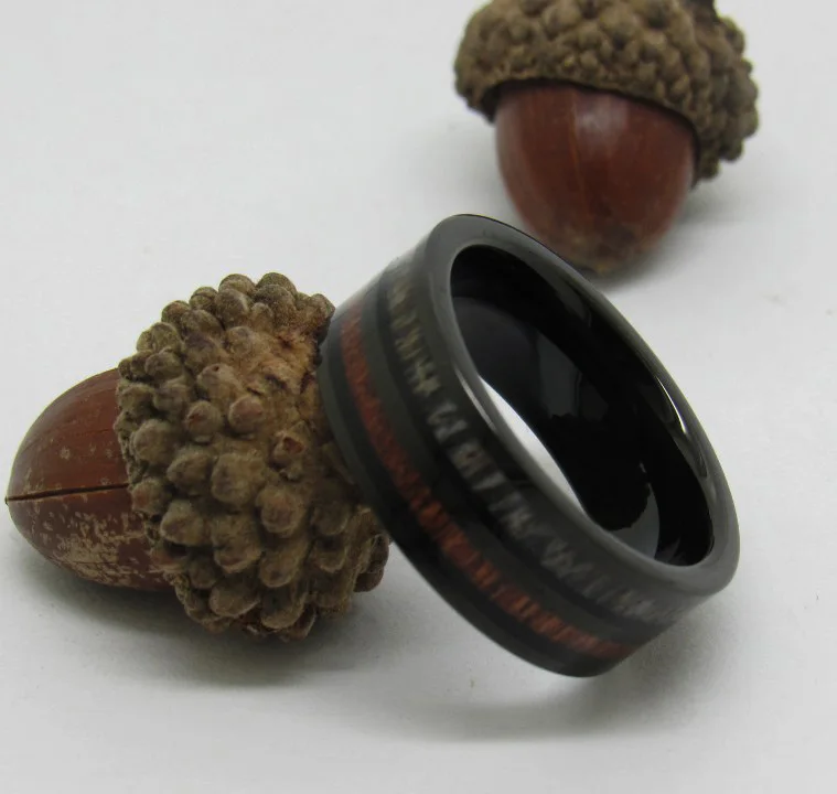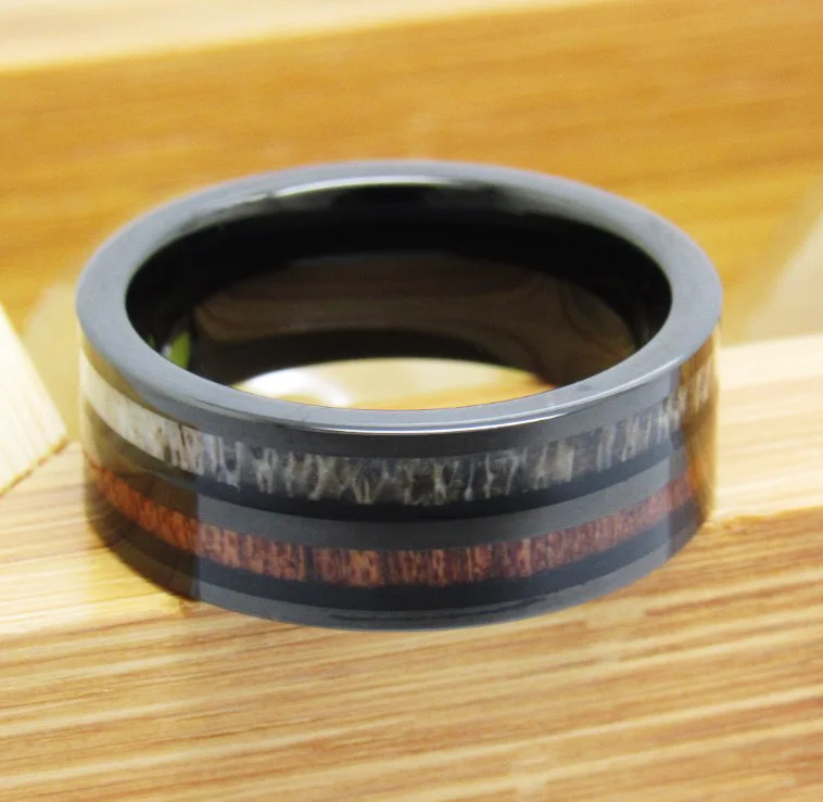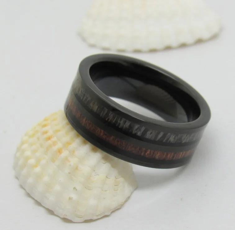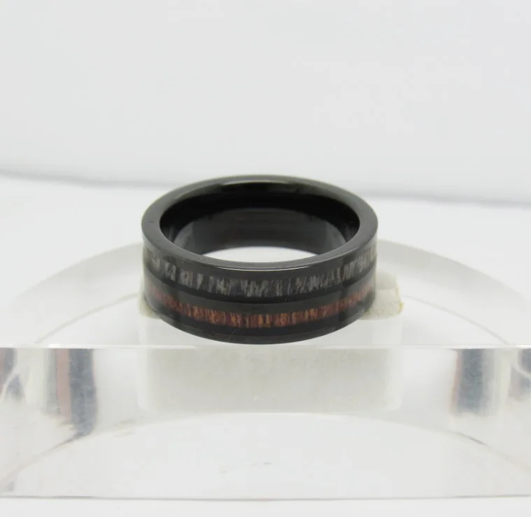 Кольца мужские вольфрамовые, ширина 8 мм, инкрустация из натурального рога оленя и Коа черного цвета, для свадьбы, 6-13