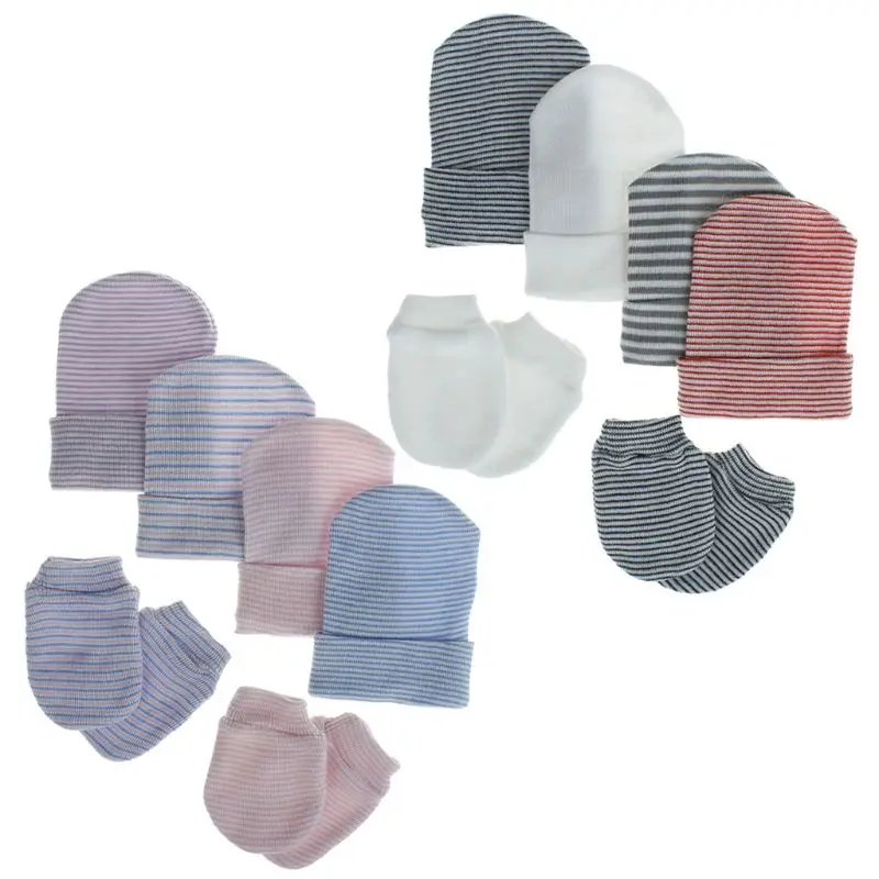 Характеристики: Материал: смесь хлопка Размер: шляпа плитка: 10 × 12 см/3,94 дюйма × 4,72 дюйма перчатки: 7 см × 10 см/2,76 дюйма × 3,94 дюйма подходит для 0-3 месяцев Цвет: белый, Серый + белый, синий + розовый + белый, красный + белый, синий + белый, фиолетовый + белый, черный + белый, розовый посылка включает в себя: 1 ребенок Кепки