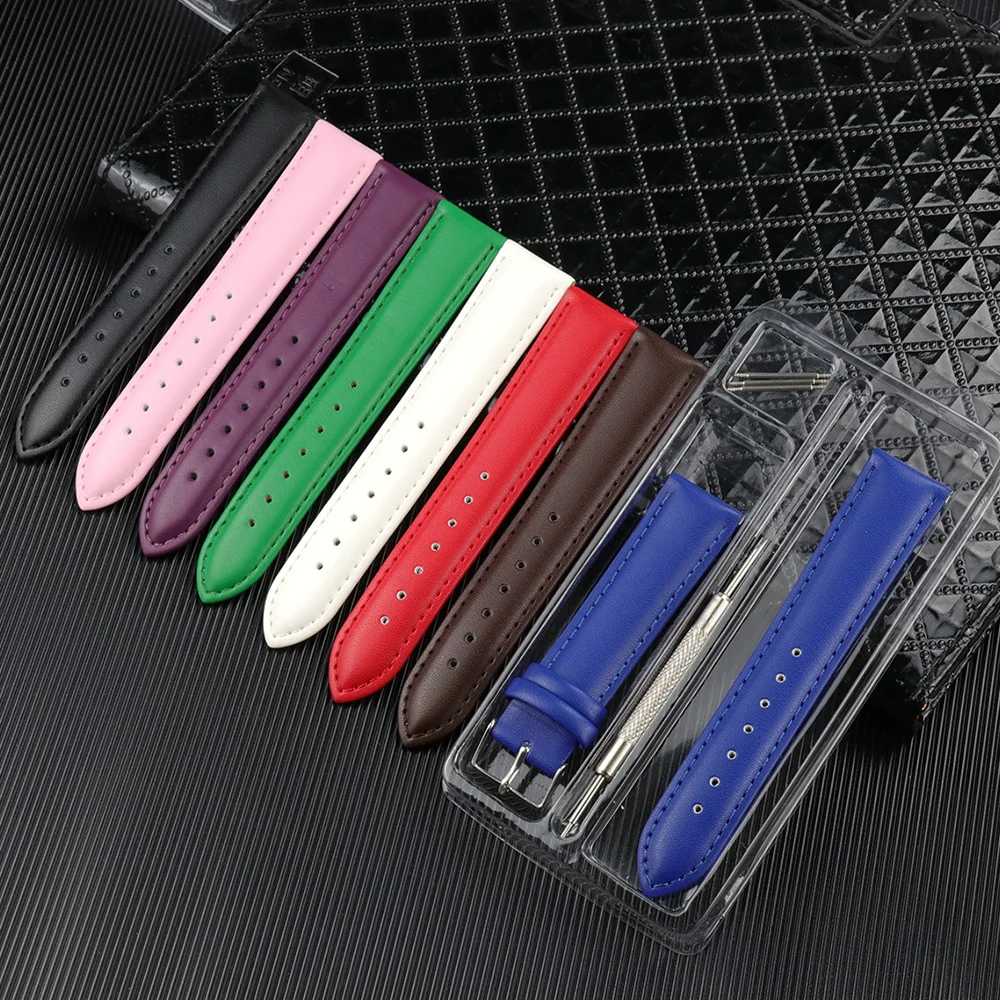 Ремешок из натуральной кожи для часов, браслет для часов, 10 мм 12 мм 14 мм 16 мм 18 мм 20 мм 22 мм 24 мм, черный коричневый красный синий белый, с инструментами