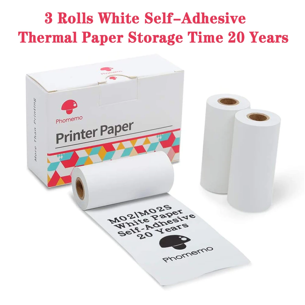 3 рулона самоклеящейся термобумаги Phomemo M02M02 ProM02S, время хранения фотобумаги 20 лет