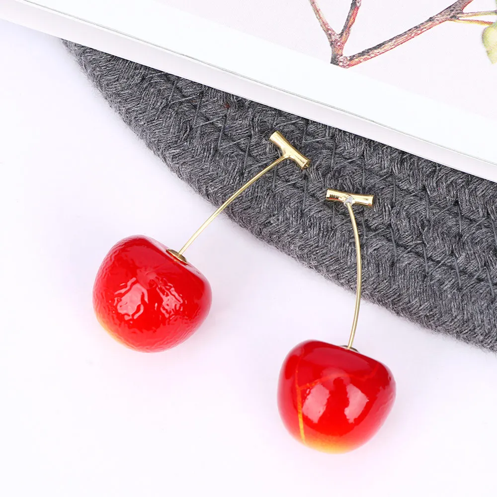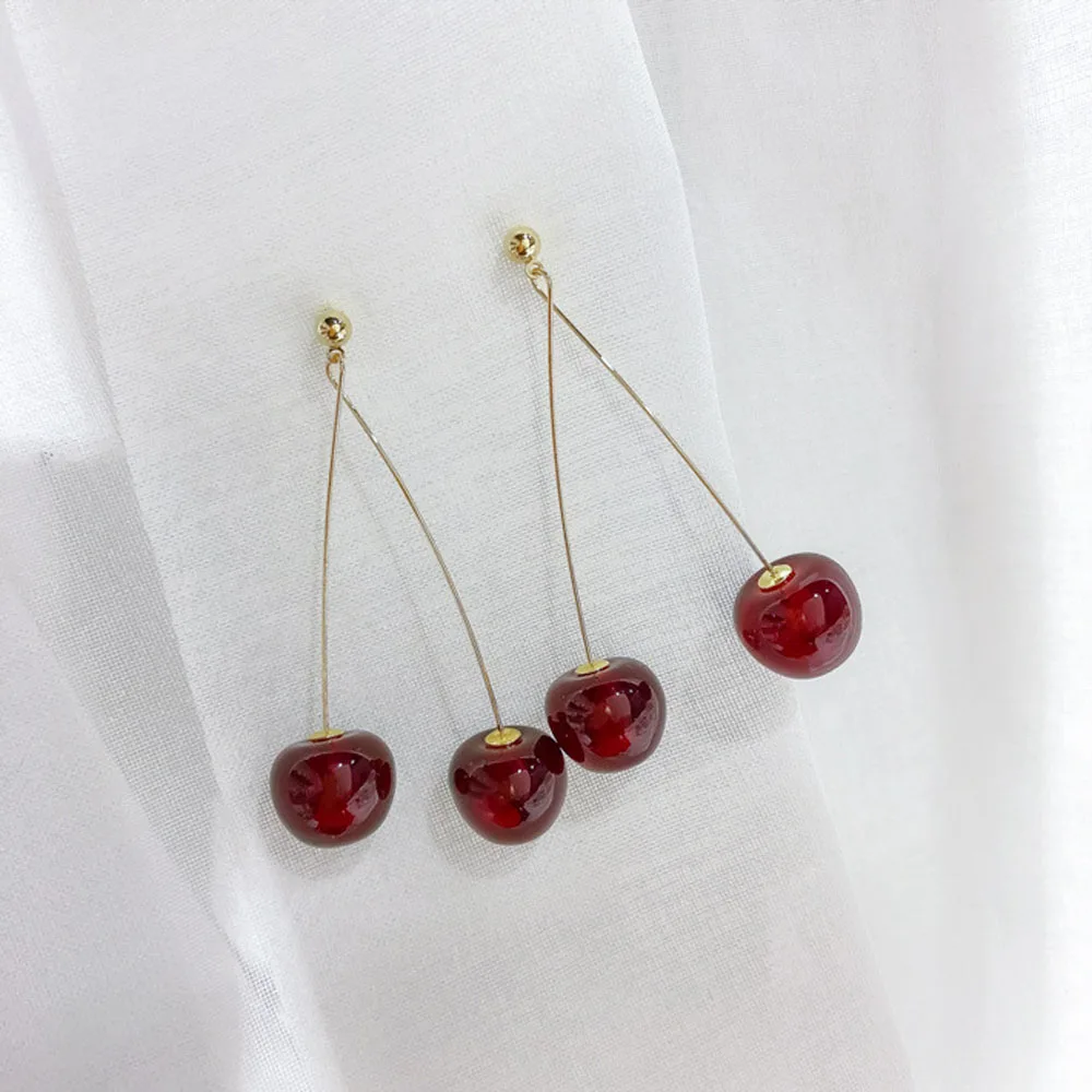 Серьги-подвески в виде красной вишни женские, милые длинные серьги с фруктами в ретро стиле, ювелирные изделия для женщин, висячие серьги-подвески с имитацией вишни