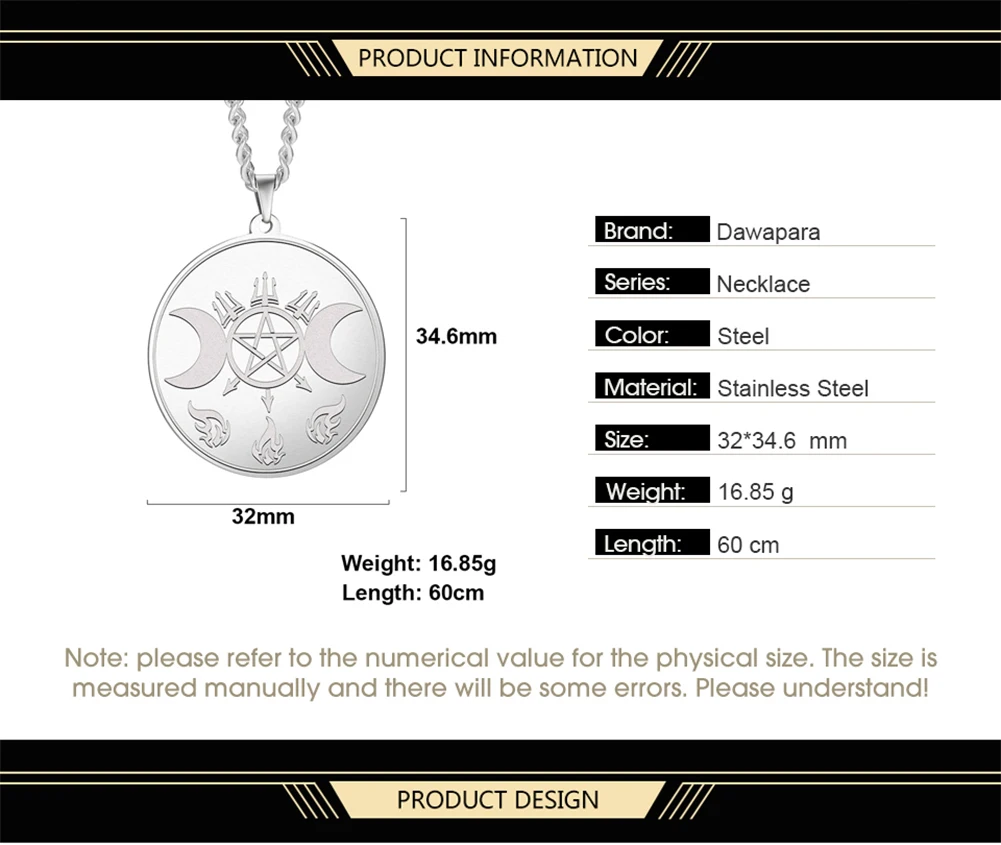 Dawapara, лунная богиня, Каббала, колье с кулоном в стиле викингов, Hekate Witchcraft Power, амулет, подвеска из нержавеющей стали, мужское ожерелье