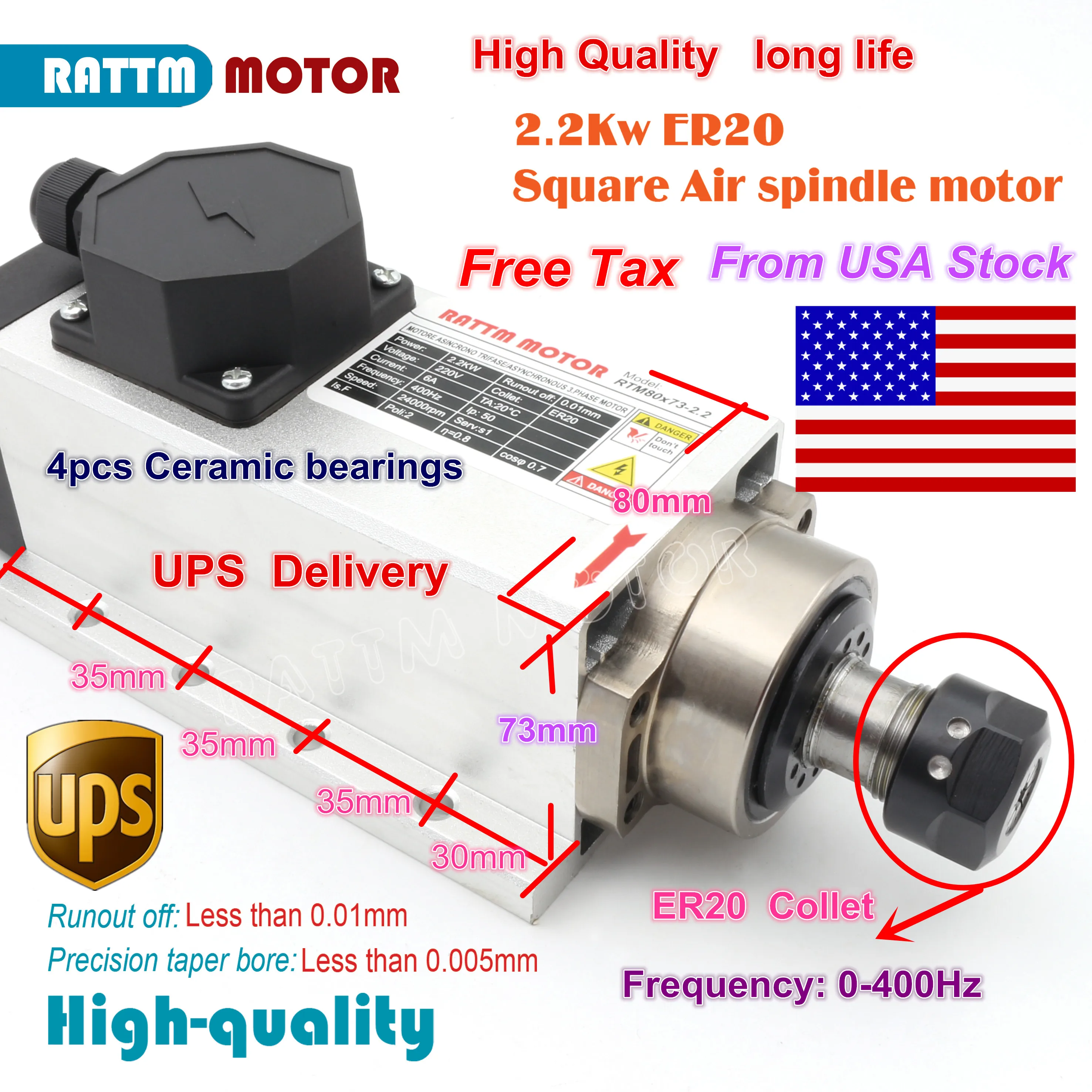США Корабль/Бесплатная доставка квадратный 2.2kw с воздушным охлаждением шпиндель двигатель ER20 runout-off 0,01 мм, 220 В, 4 керамических подшипника, гравировка фрезерования