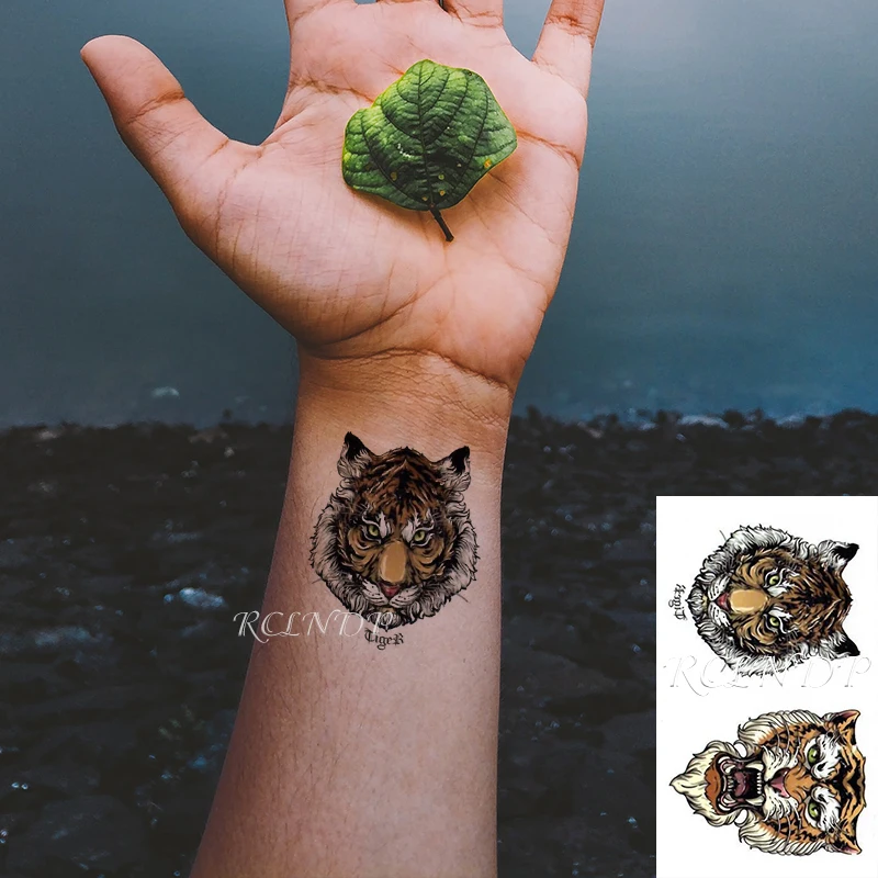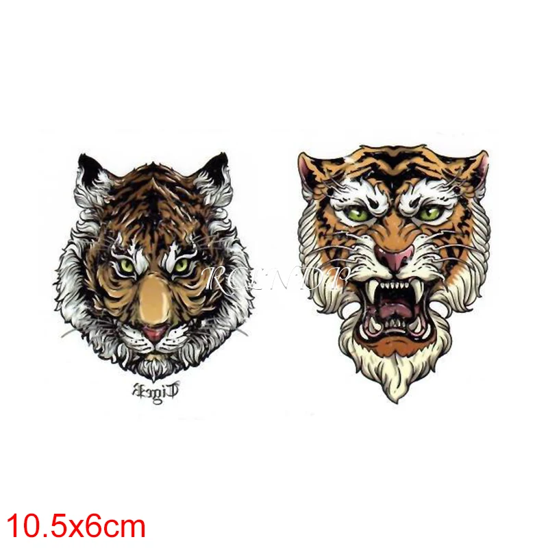 Временная татуировка, водостойкая, с головой тигра, короля, с большими животными, флэш-тату, для боди-арта детей, мужчин, женщин