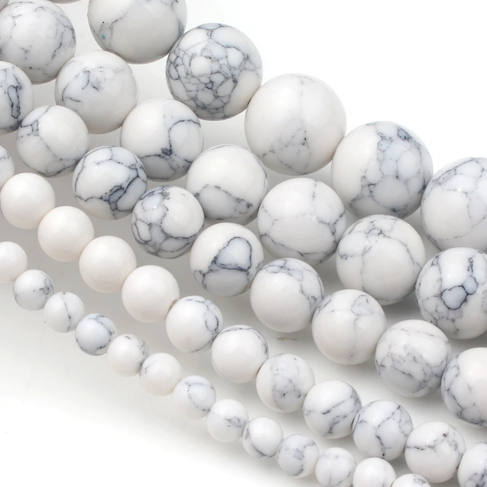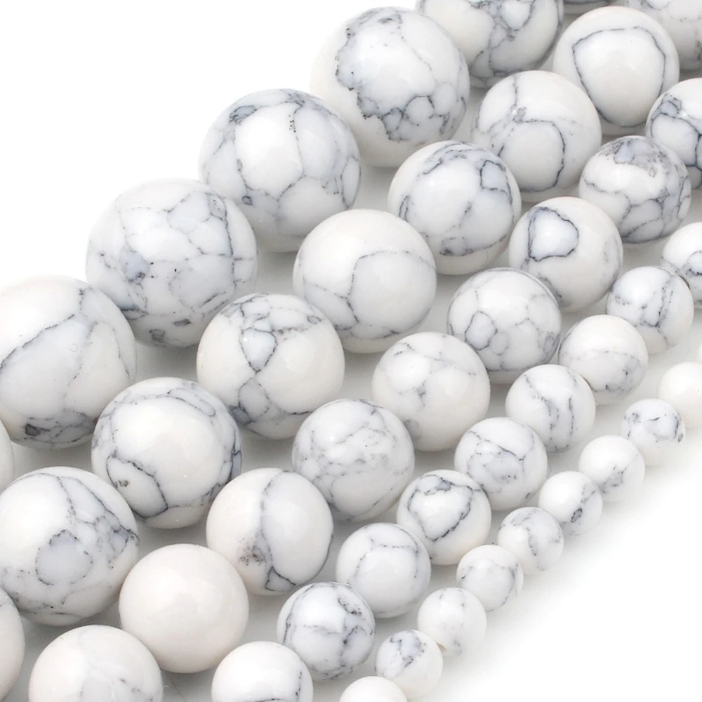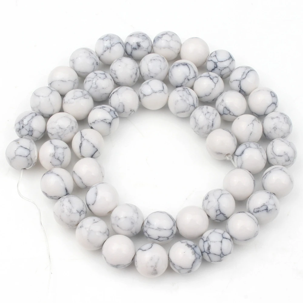 Белые бусины из бирюзовый говлит камней, круглые бусины-Рондель для самостоятельного изготовления ювелирных изделий, аксессуары для браслета 4, 6, 8, 10, 12 мм, 15 дюймов