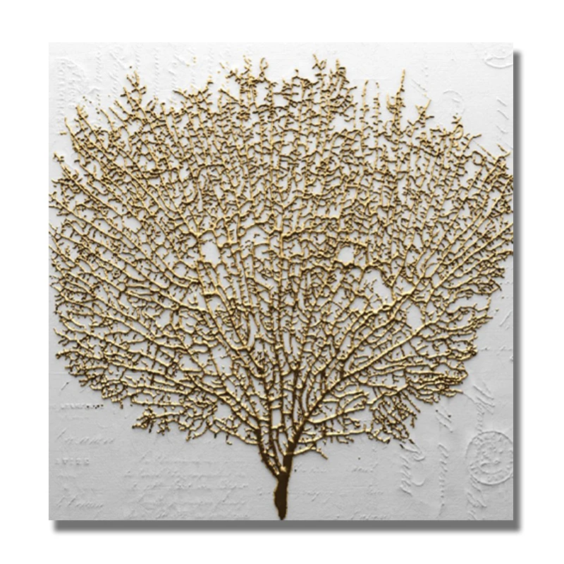 Водонепроницаемый абстрактный Золотой дерево, холст для живописи постеры с масляной живописью принты Quadros настенные картины для Гостиная домашний декор Куадрос