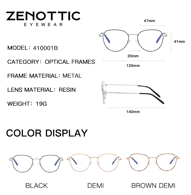 ZENOTTIC сплав полуоправы очки по рецепту для мужчин анти-синий-луч...