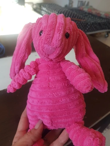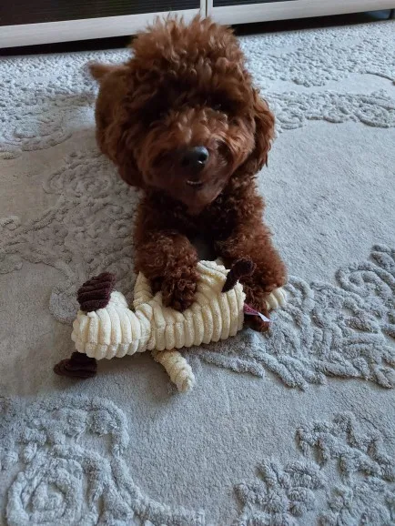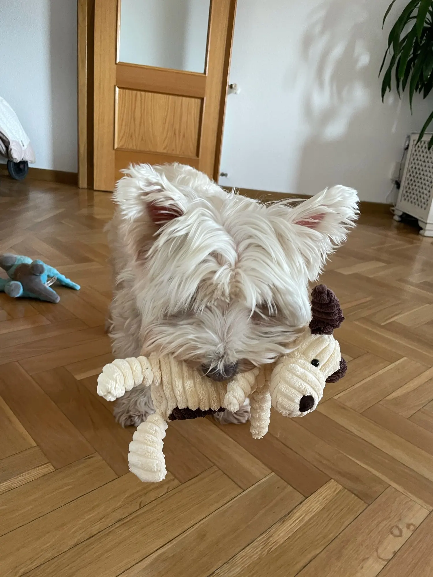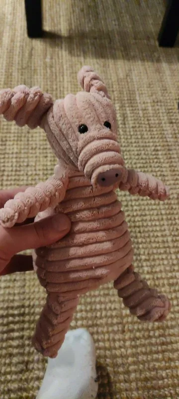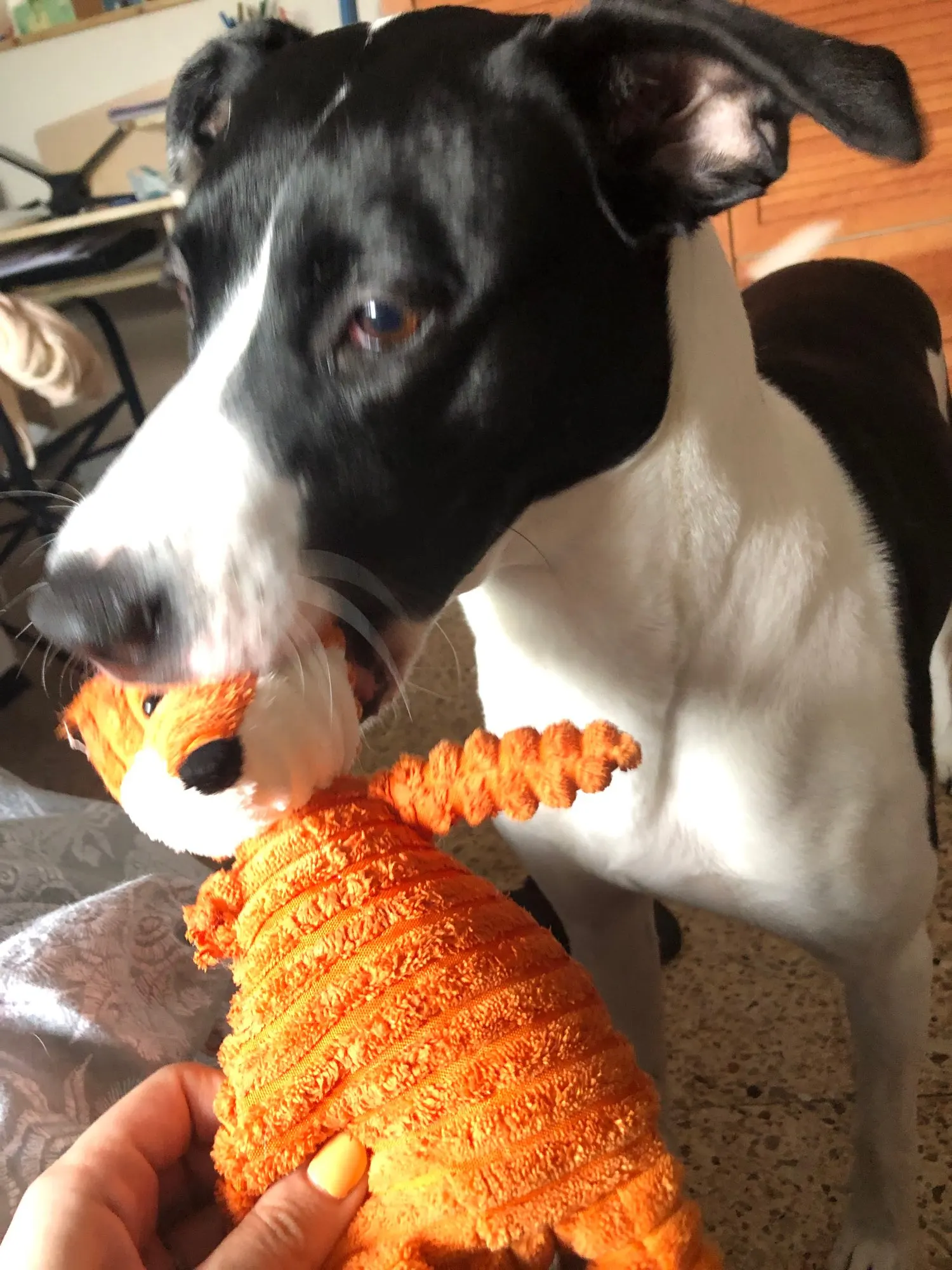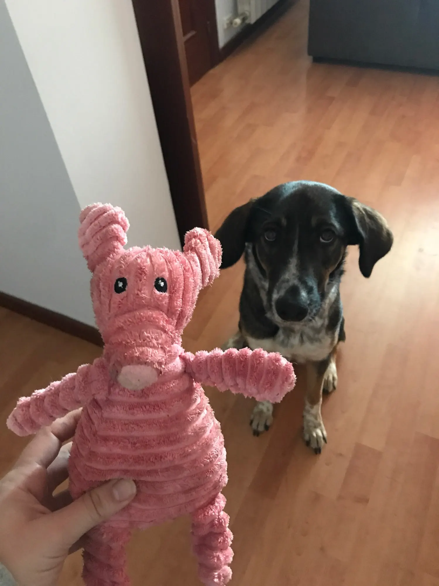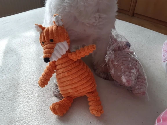 Доставка в Испанию занимает 20 дней. En doggy очень мягкий и мягкий, включает в себя петух, который звучит при сжимании живота. На одной стороне есть небольшое непрошитое отверстие, но это не важно, я пришлю его, и я буду готов.