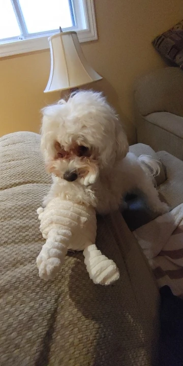 Как вы можете видеть на изображении. У него нет глаз или ничего, что собака может снять. Единственное, что он вытянул, когда получил, было ухо. Размер идеальный.