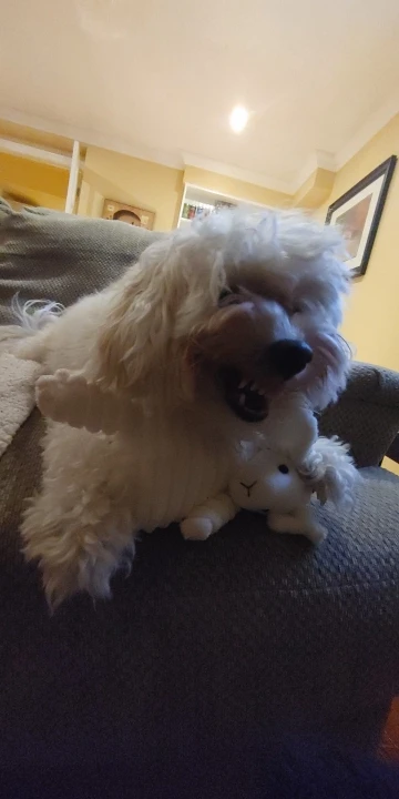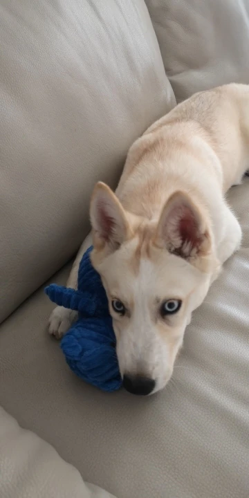 Хорошая игрушка, правда брала её совсем не для собаки. Хотела что-то подарить брату прикольное, смотрю игрушка и дизайн интересный, решила купить и только спустя неделю прочитала что игрушка для собаки)))
