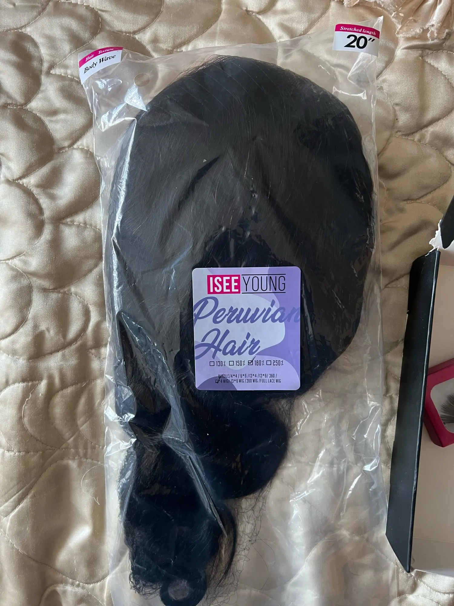 Я из Канады, заказал 20 дюймов, 180% плотность, 13х4 объемную волну. Я заказал 16 марта, и он пришел 22. Продавец был великолепен с общением. Для волос, это хорошо! Также он мягкий! Поставляется с париком и ресницами. Сначала я был скептически настроен из-за некоторых отзывов, но он пришел хорошо, поэтому я доволен. Мне нравится, и я думаю, что буду заказывать снова. Я попробую сделать второй отзыв, как только установлю парик. Что касается доставки, как вы видите, это было действительно быстро. Я впечатлен.