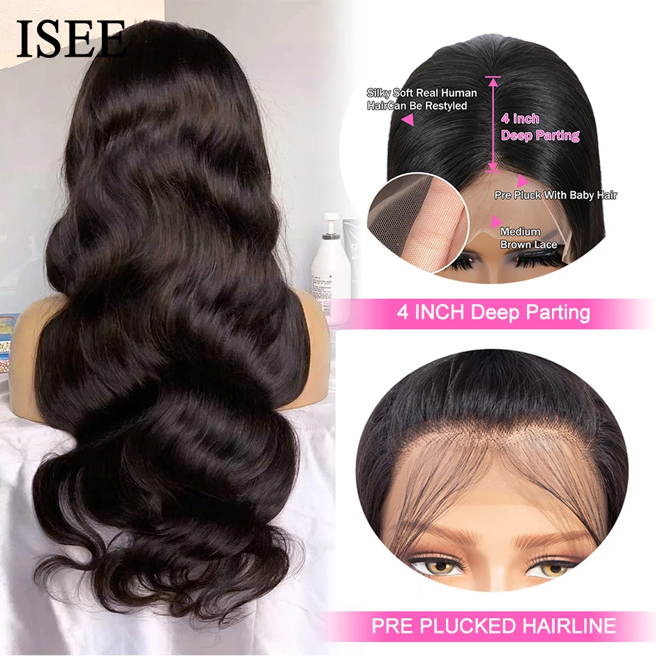 Парик ISEE из перуанских волос с объемной волной, парик 4 х4 с закрытием на шнурке для женщин, парики из натуральных волос 13 х4, парики на шнурке